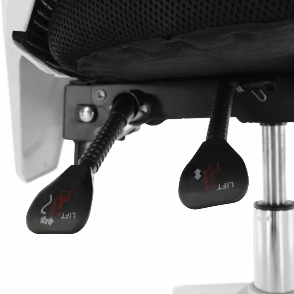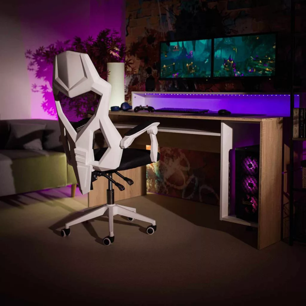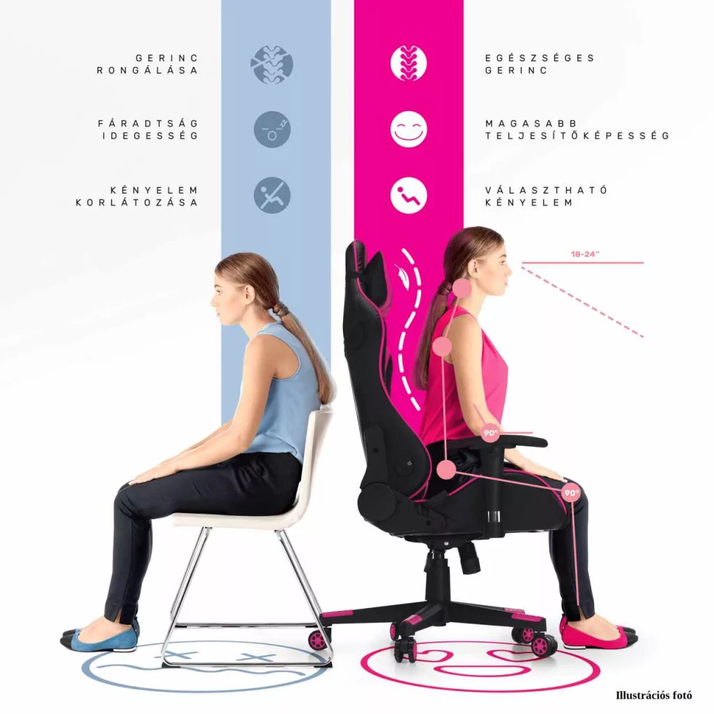Anyag: háló/műanyag/fa Szövet kopásállósága a Martindale-teszt szerint: 90 000 ciklus Szín: fekete/fehér Méretek (SzéxMéxMa): 60x65x113-123 cm Beállítható ülésmagasság: 45-55 cm Ülés mélysége: 49 cm Ülés szélessége: 50 cm Háttámla magassága: 75,7 cm Háttámla szélessége: 48 cm Maximális teherbírás: 110 kg Gamer A háttámla dőlésének beállítása 90° - 135° Forgatható Fejtámlával Kartámlával Hintamechanika Talpazat anyaga Ülés fa szerkezete Univerzális kerekek puha és kemény padlókhoz egyarántBontásban szállítva