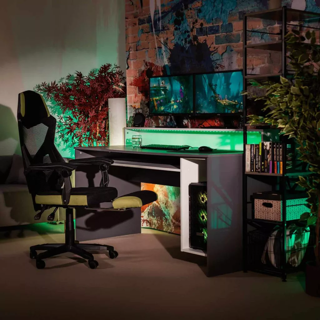 Irodai/gamer szék, fekete/zöld, JORIK