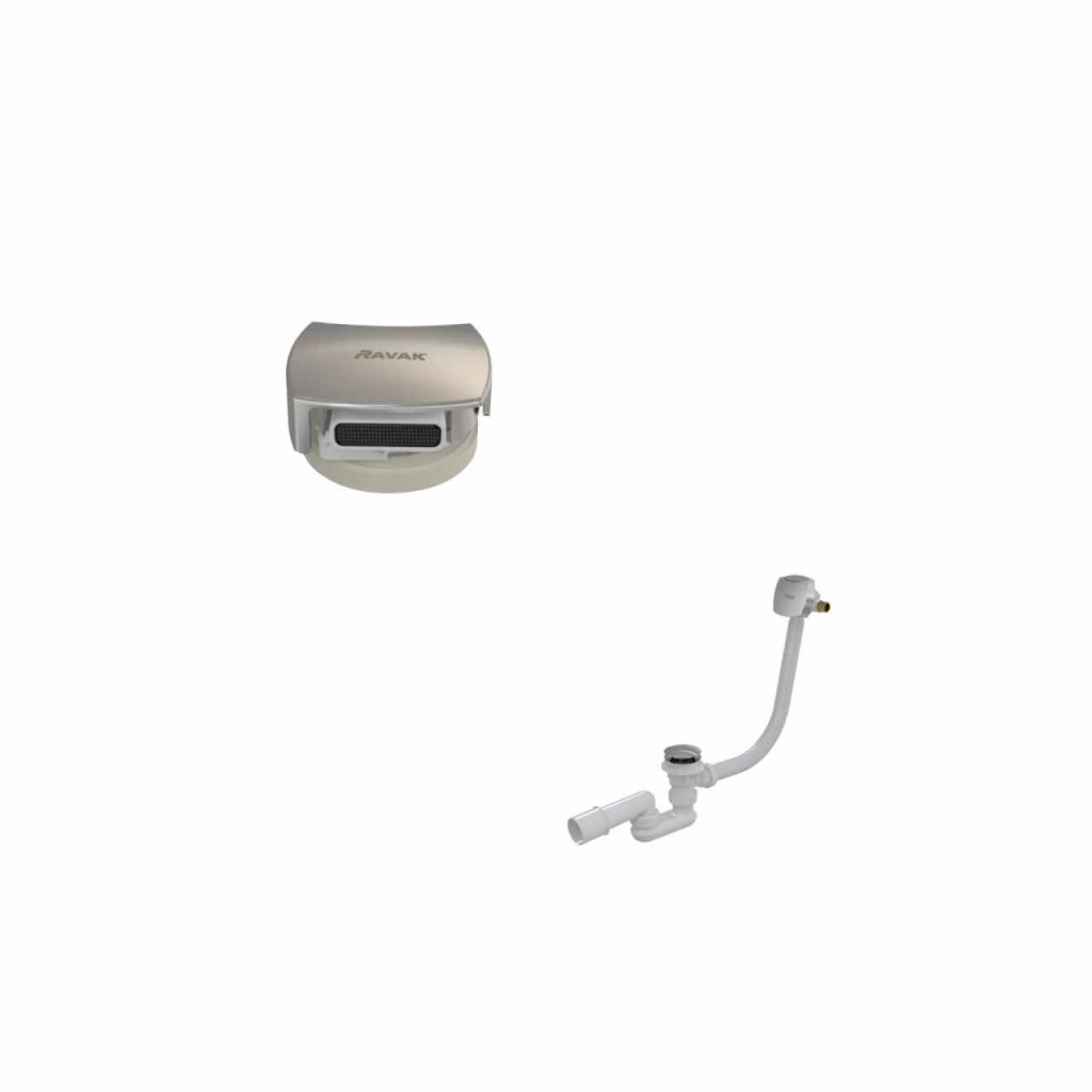 A túlfolyóval ellátott kád leeresztő készletek 800 mm hosszúságban, a leeresztő dugó lenyomásával működő Click-Clack vezérléssel. A termékhez tartozik szifon (szagelzáró), fém szifon dugó és műanyag töltőfej. A leeresztő vezérlése négyzet alakú, fényes króm felületkezeléssel.