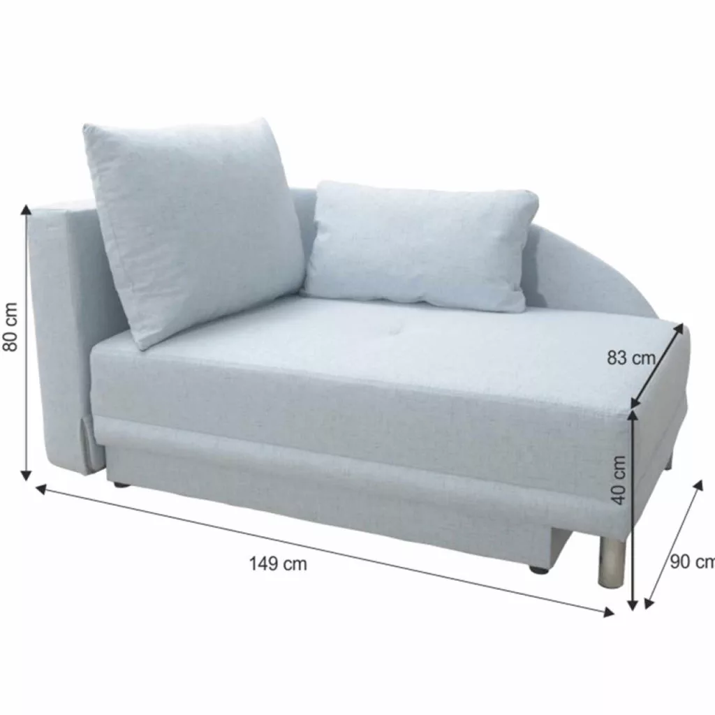 Kanapé LAUREL Anyag: Cablo szövet A szövet kopásállósága: 72 000 Martindale Színe: világoskék 11 Méretek (SzéxMéxMa): 149x90x80 cm Fekvőfelület (SzéxH): 80x195 cm Ülésmagasság: 40 cm Ülésmélység: 83 cm Az alsó tér magassága a padlótól: 10 cm Teherheltőség: 90 kg Kinyitható Rakodótérrel Az ülőrész bonell kitöltéssel készült Két párna Balos változat Lapraszerelten szállítva Rendelhető 3 színváltozatban Haiti szövetből vagy a 6 színváltozatban Cablo szövetből ár: 188 500 Ft. Egyedi megrendelés esetén szükség van az adott összegnek a 20%-át befizetni,mint előleg. Az előleg befizetése után az Ön követelményét benyújtjuk a gyártónak. Szállítási idő: 6-8 hét.