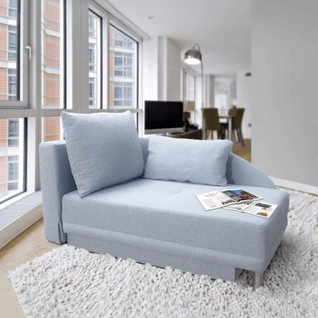 Kanapé ágyfunkcióval, világoskék anyag, balos kivitel, LAUREL