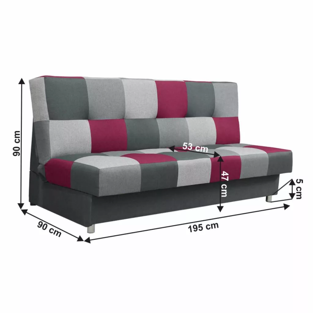 Anyag: Malmo szövet A szövet kopásállósága: 30 000 MartindaleSzín: bordó/szürke Méretei (SzéxMéxMa): 195x90x90 cm Alsó terület magassága a padlótól: 5 cm Ágyfunkcióval KLIK KLAK széthúzható rendszer Fekvőfelület (SzéxHo): 195x116 cm Ágyneműtartóval Ülőrész: Bonell rugó Ülésmagasság: 47 cm Ülésmélység: 53 cm Terhelhetőség: 90 kgLábakon Bontásban szállítva.