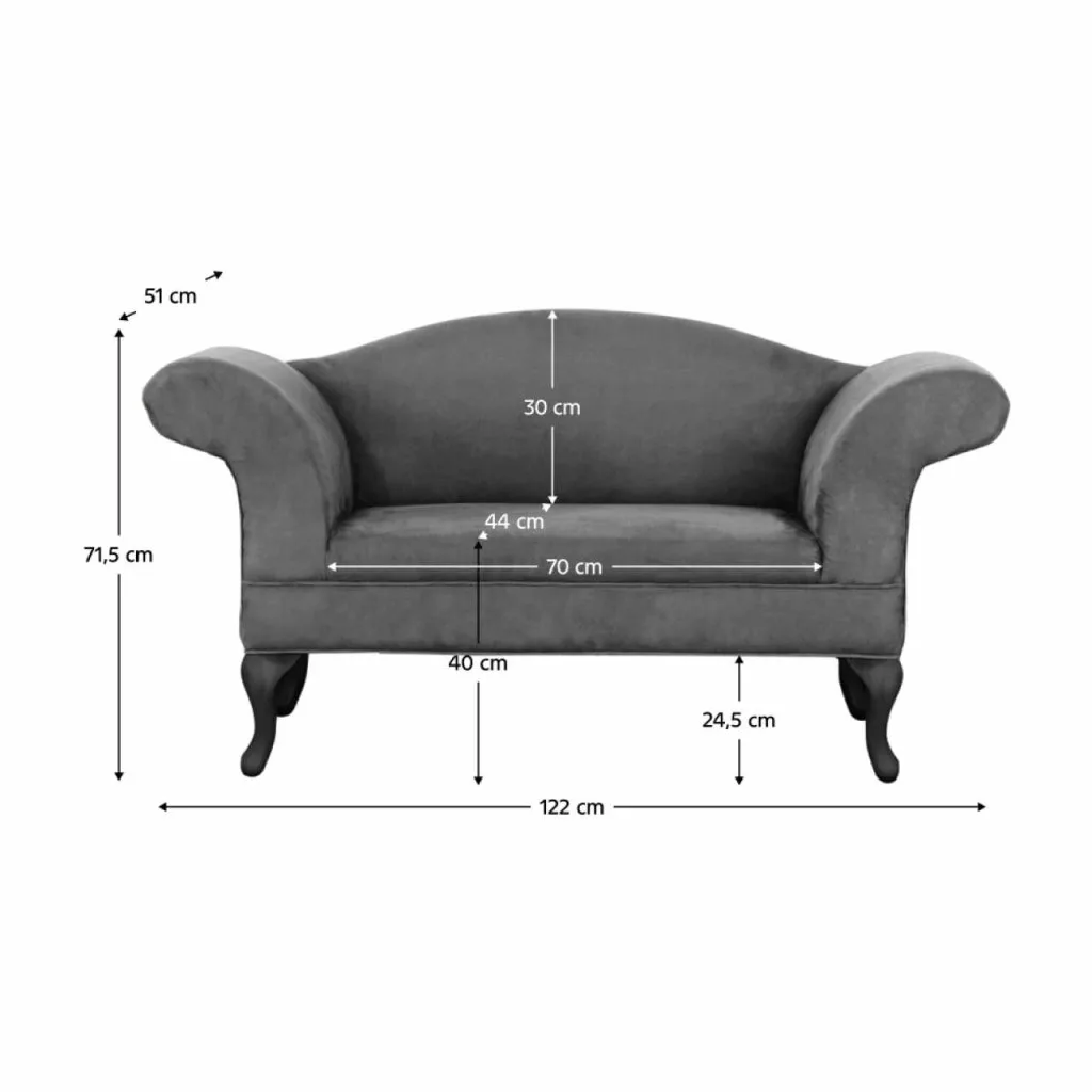 Egyedi és stílusos kanapé fa lábakon rusztikus stílusban. Anyag: szövet/fa A szövet kopásállósága: 100 000 MartindaleSzínváltozat: szürke/ fekete Hab kitöltés az ülőrészben. Méretek (SzéxMéxMa): 122x51x71,5 cm. A kanapé belső szélessége: 70 cm. Ülőrész magassága: 40 cm.Terhelhetőség: 90 kg