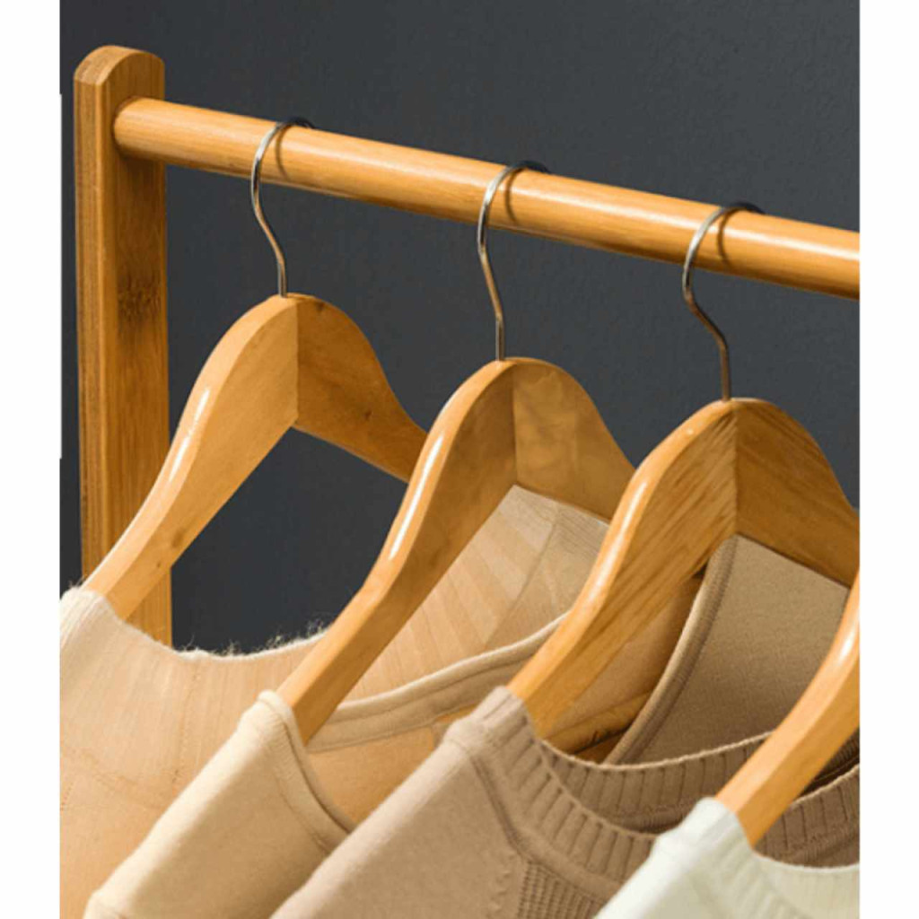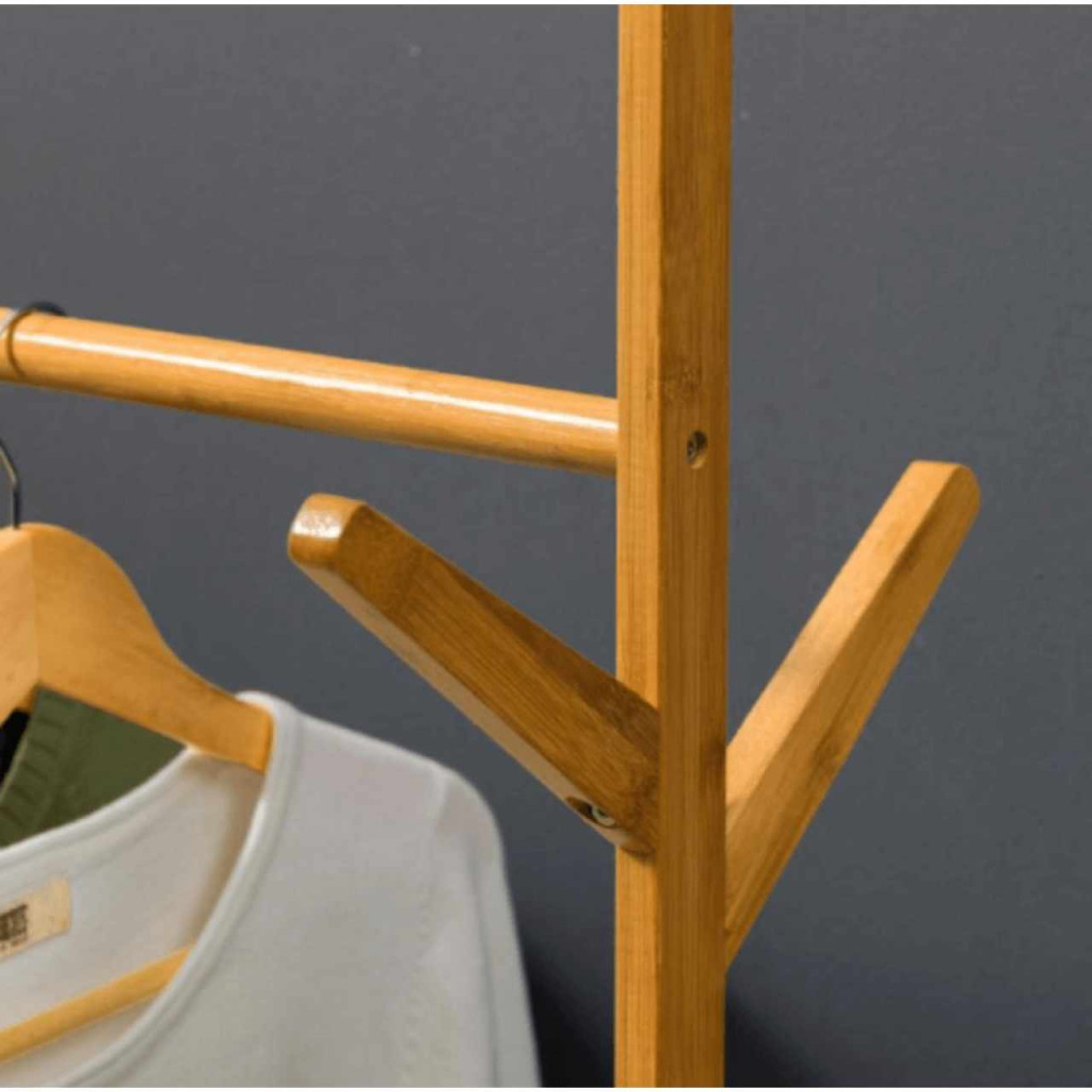 Kerekes ruhaállvány, VIKIR 3 Anyag: bambusz Szín: bambusz Méretek (SzéxMéxMa): 100x35x174 cm Fogas rúd Alsó polc Hat kampó Négy kerék Terhelhetőség: 15 kg