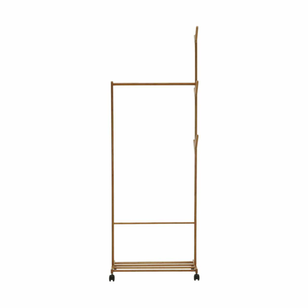 Kerekes ruhaállvány, VIKIR 1 Anyag: bambusz Szín: bambusz Méretek (SzéxMéxMa): 60x35x174 cm Fogas rúd Alsó polc Hat kampó Négy kerék Terhelhetőség: 15 kg