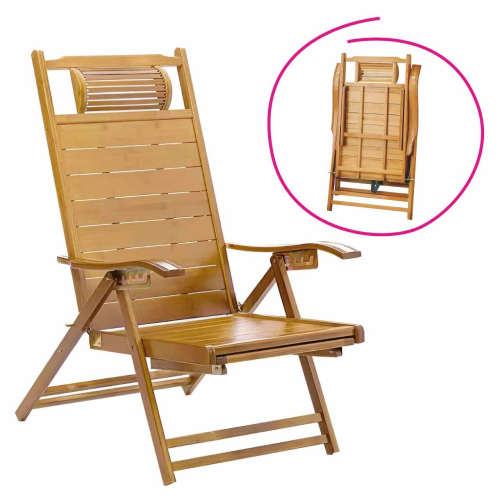 Anyag: masszív bambuszfaSzín: természetesMéretek (SzxMéxMa): 61x85-169x43-100 cmÜlés magassága: 36 cmÜlés mélysége: 52 cmÜlés szélessége: 48 cmHáttámla magassága: 78 cmA háttámla szélessége: 48 cmTeherbírás: 100 kgSúly: 13 kgKertiÖsszecsukhatóÁllítható5 pozícióban dönthetőFejtámlaKarfákkalFotelNyugágyKihúzható lábtartóvalLábtartó méretei (SzxMé): 43x38 cmPraktikusModern dizájnEgészben szállítva