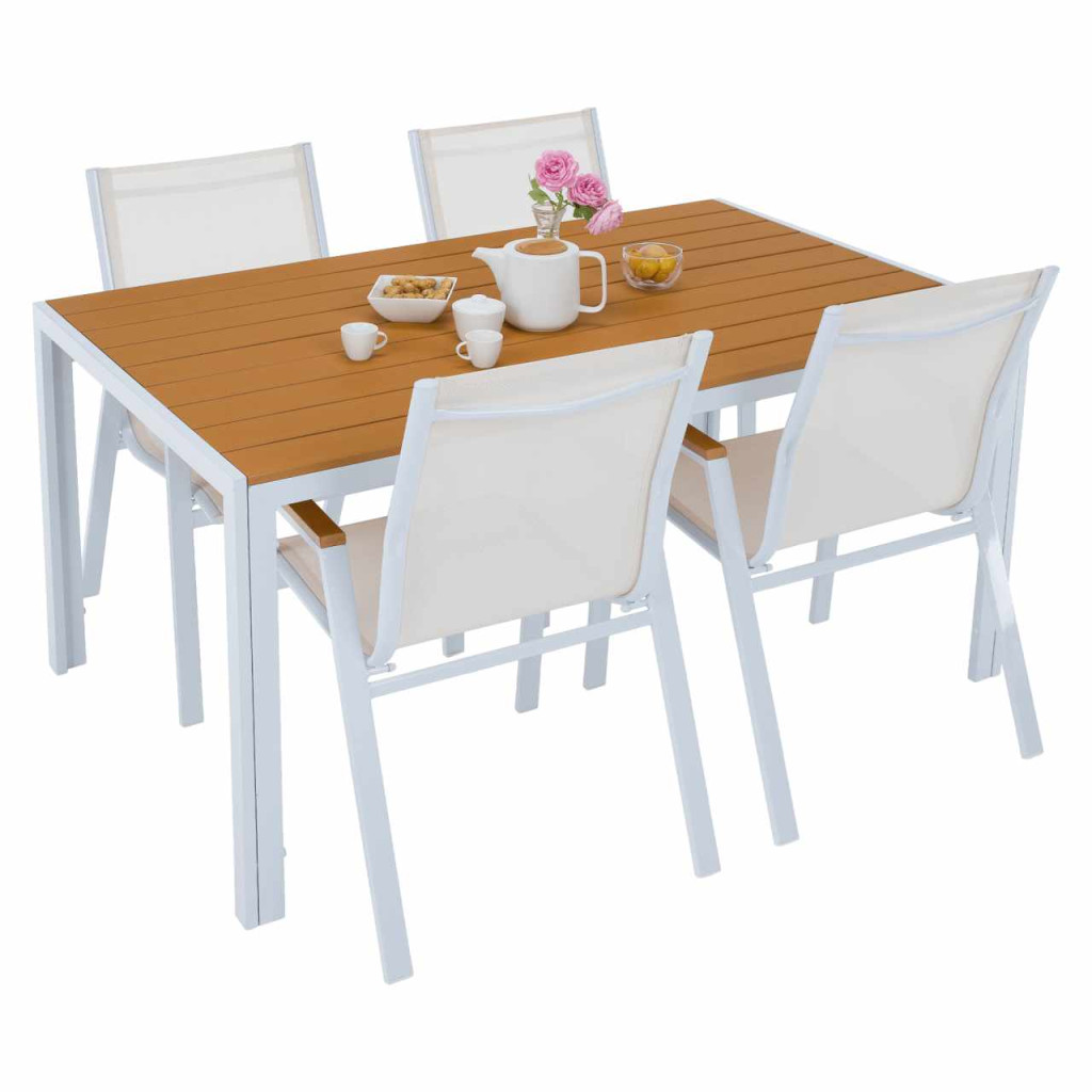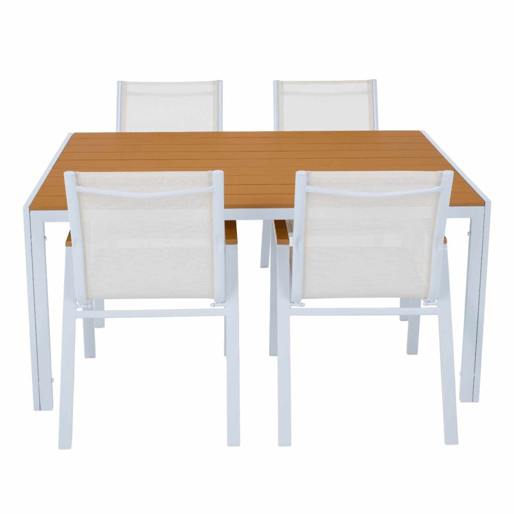 Anyag: acél/polywoodSzín: fehér/tölgyMéretek (SzxMéxMa): 150x90x73 cmTeherbírás: 25 kg4-6 személy számára alkalmasEgyszerűKertiEgészben szállítva