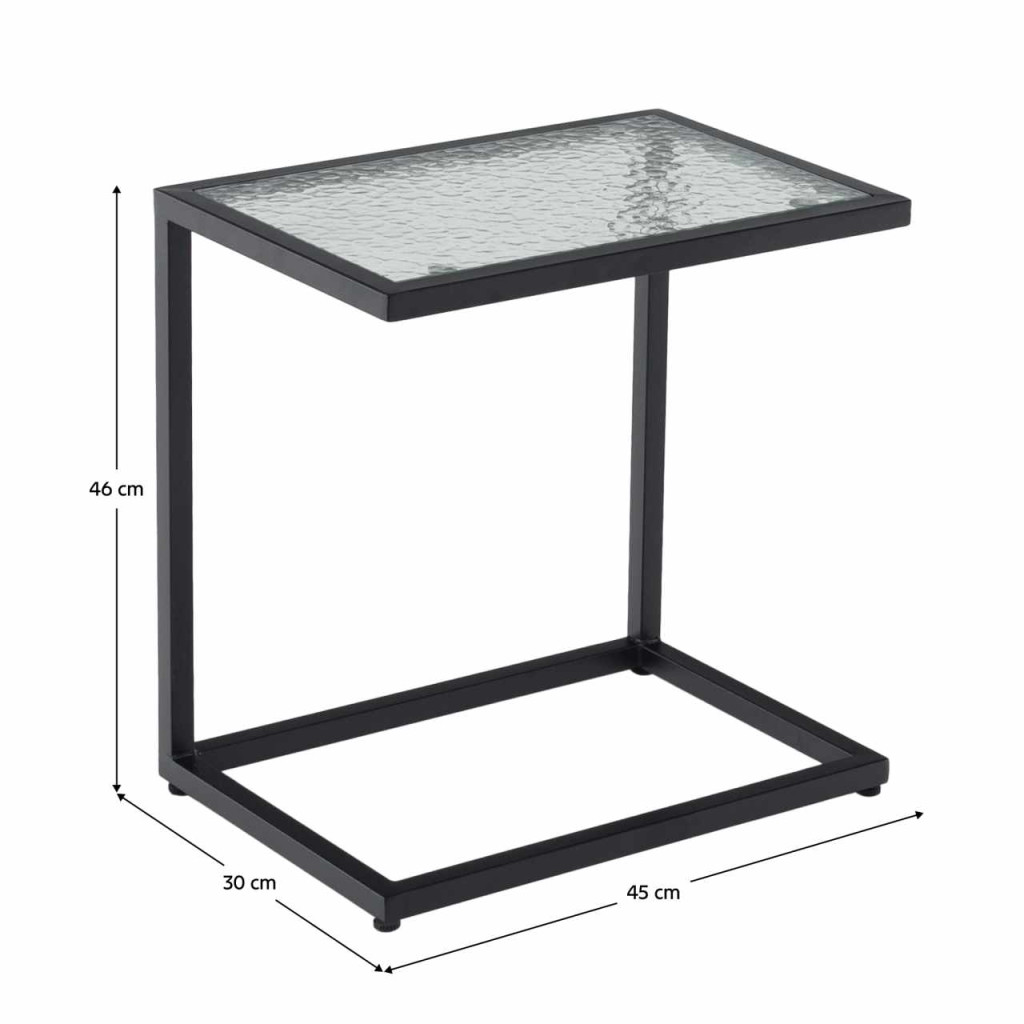 Anyag: edzett üveg/acélSzín: feketeMéretek (SzxMéxMa): 45x30x46 cmKisasztalkaAsztalka teherbírása: 10 kgSúly: 3 kgÜveg vastagsága: 5 mmKertiSzétszerelve szállítva
