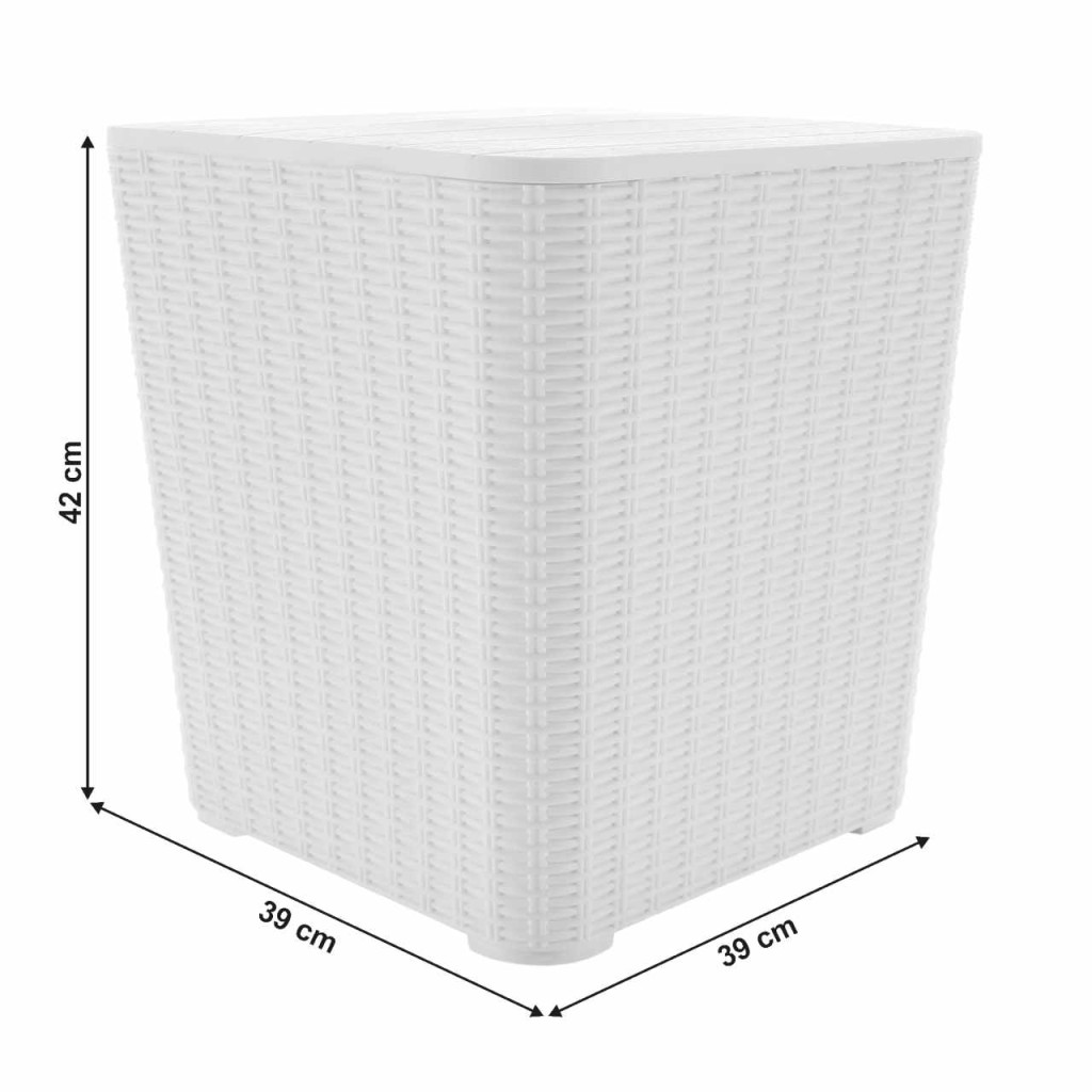 Anyag: műanyag Szín: fehér Méretek (SzxMéxMa): 39x39x42 cm Térfogat: 43 liter Tároló doboz Kisasztalként is használható Ülésre alkalmatlanSzétszerelve szállítjuk