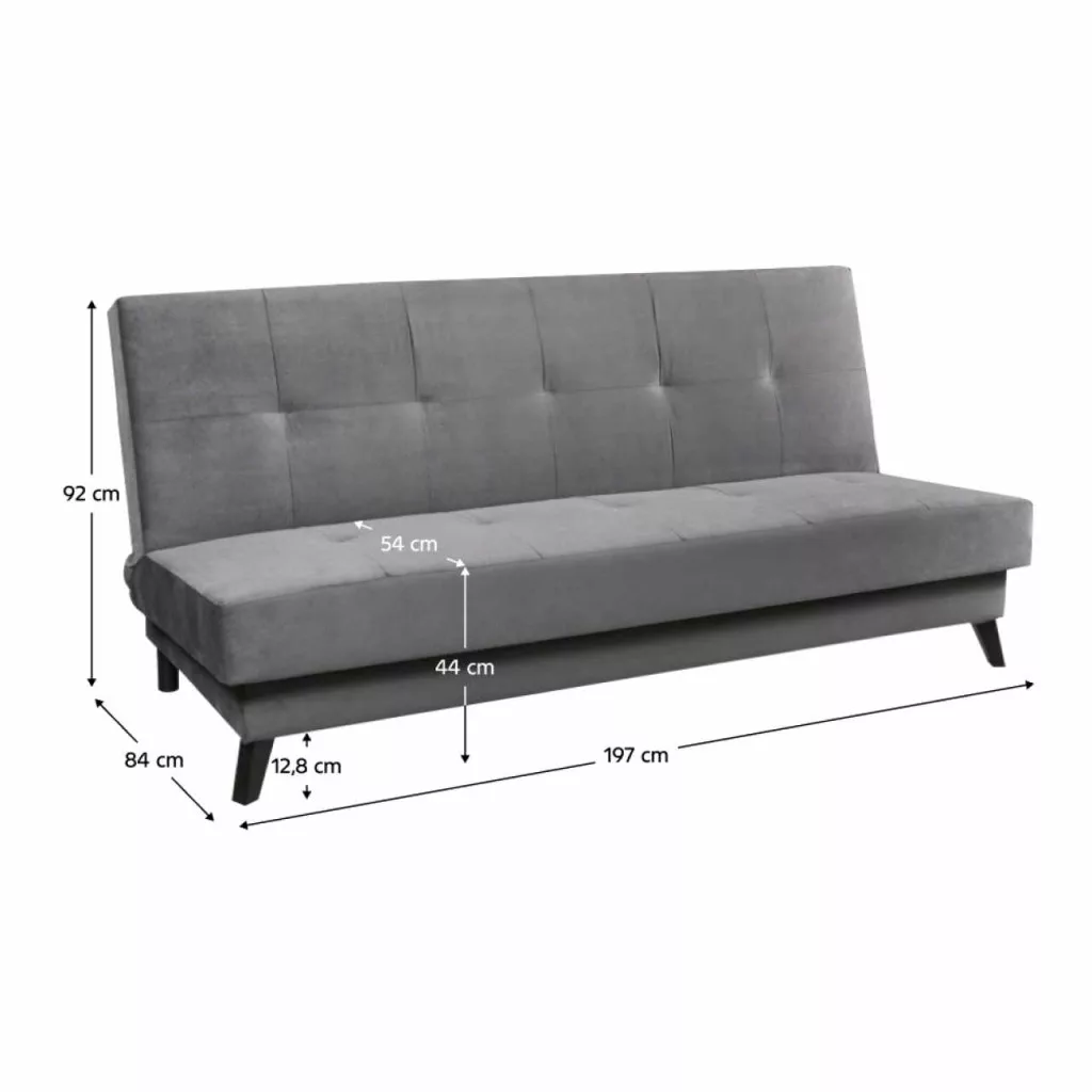 Anyag: szövet Trinity 15A szövet kopásállósága a Martindale teszt szerint: 55 000 ciklusSzín: szürkeMéretek (SzxMéxMa): 197x84x92 cm Alvófelület (SzxHo): 118x197 cm Ülés magassága: 44 cmÜlés mélysége: 54 cmTeherbírás/ személy: 90 kgÜlőrész magja: falista rugó/purhabLábakonLábak anyaga: faLábak színe: feketeAz alsó tér magassága a padlótól: 12,8 cmKihúzhatóTárhelyVízálló szövetSzétszerelve szállítva.