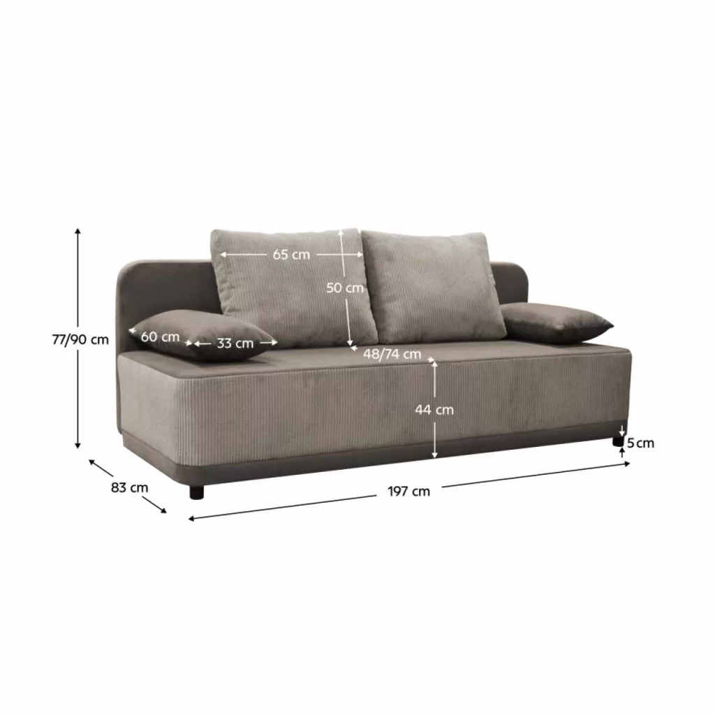 Anyag: szövet Manila 05/Poso 03A Manila szövet kopásállósága a Martindale teszt szerint: 58 000 ciklusA Poso szövet kopásállósága a Martindale teszt szerint: 90 000 ciklusSzín: szürkésbézs TaupeMéretek (SzxMéxMa): 197x83x77/90 cmAlvófelület (SzxHo): 141x196 cmÜlés magassága: 44 cmÜlés mélysége: 48/74 cmLábak anyaga: műanyagLábak színe: feketeAz alsó tér magassága a padlótól: 5 cmTöltet: purhabTeljesen kárpitozottKihúzhatóTárhelyPárnákkal szállítvaNagy párna méretei (SzxMa): 65x50 cmKis párna méretei (SzxMé): 33x60 cmTeherbírás/személy: 90 kgPraktikusModernSzétszerelve szállítva