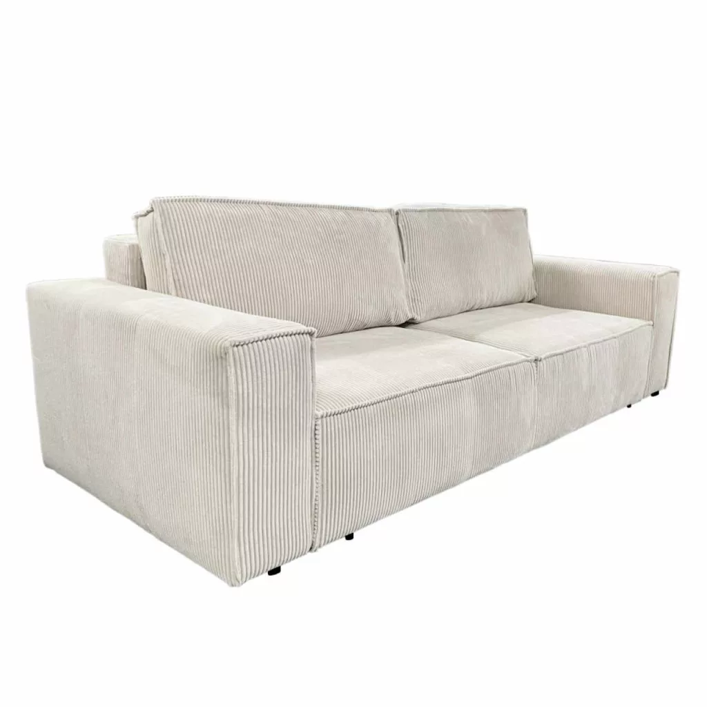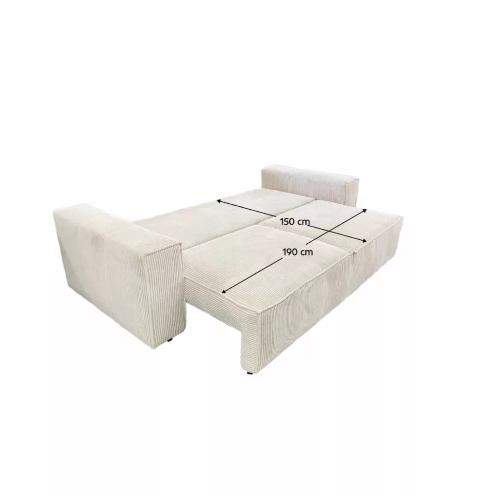 Anyag: szövet Poso 105A szövet kopásállósága a Martindale teszt szerint: 90.000 ciklusSzín: bézsMéretek (SzxMéxMa): 240x102x73/85 cmÜlés magassága: 43 cmÜlés mélysége: 63 cmAlvófelület (SzxHo):150x190 cmAz alsó tér magassága a padlótól: 4 cmKartámasz magassága: 53 cmKartámasz szélessége: 25 cmMűanyag lábakLábak színe: feketeTöltet: falista rugó/purhabTeherbírás/személy: 90 kgTeljesen kárpitozottKihúzhatóTárhellyelPárnákkalNagy párnák méretei: 95x46 cmBIG SOFA kialakításPraktikusModernSzétszerelve szállítvaA Poso szövet 8 színváltoztatában megrendelhető. Egyedi megrendelés esetén az adott összeg 20%-át előlegként kell megfizetni. Az előleg megfizetése után rendelés gyártásra kerül. A szállítási idő 6-8 hét.