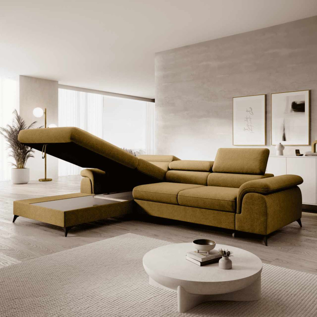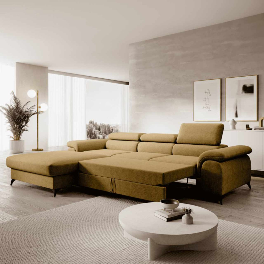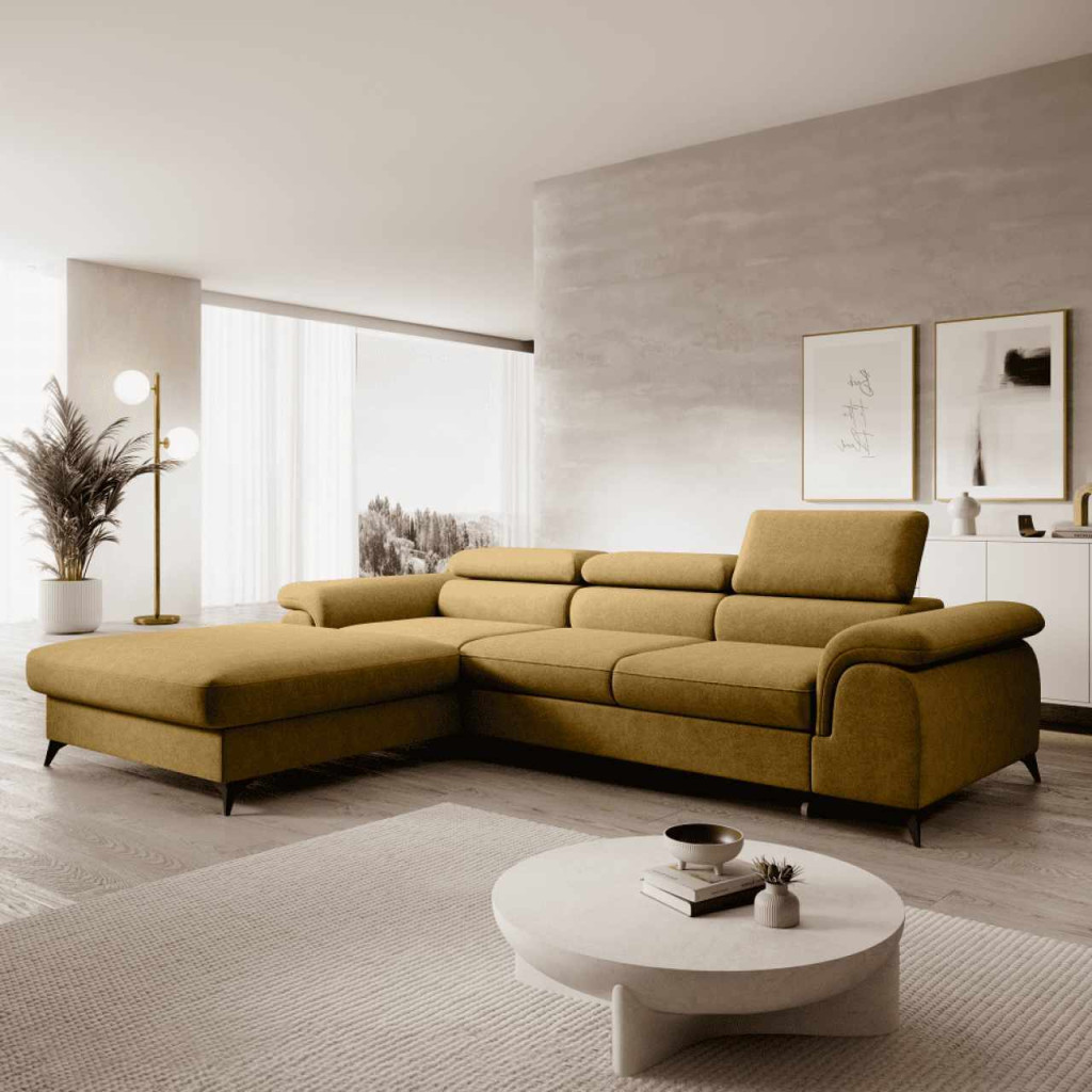 Kihúzható ülőgarnitúra, mustárszínű, balos, HORTY ROH , Sárga , Szövet