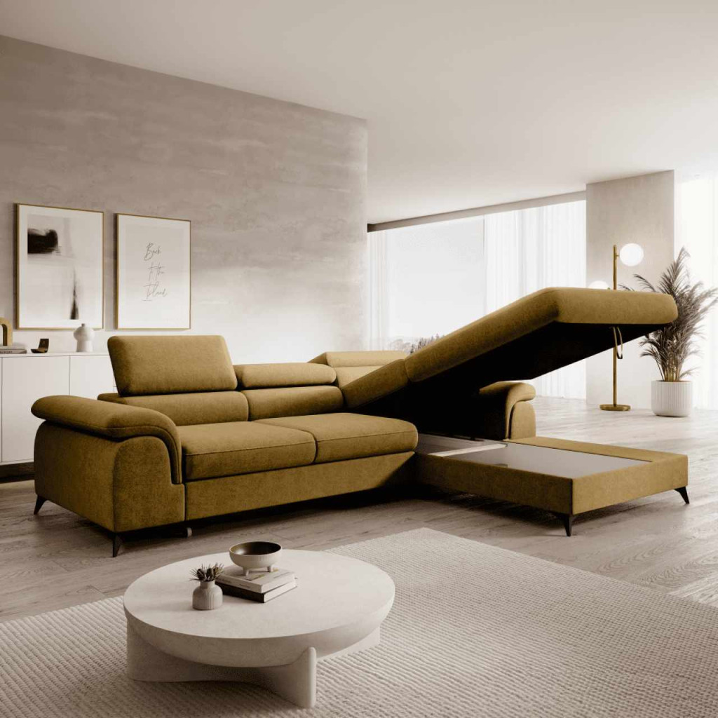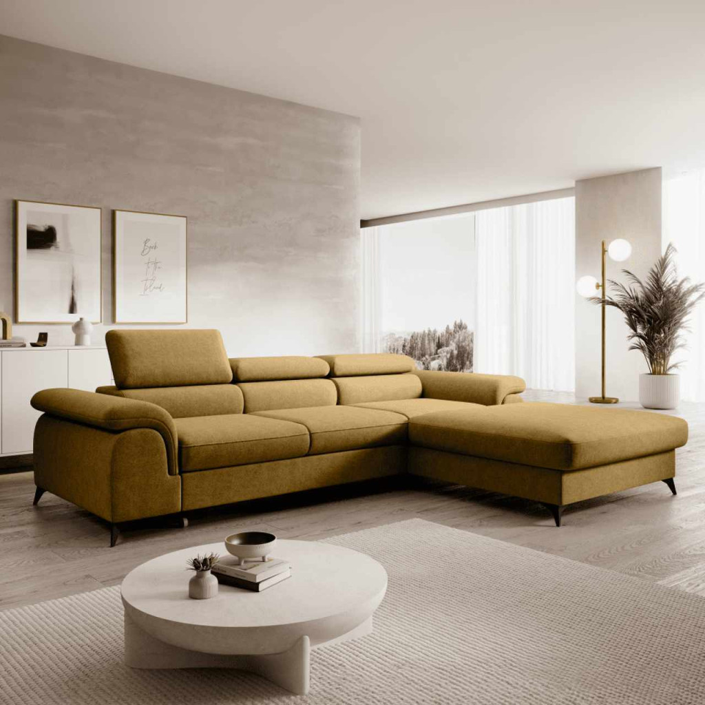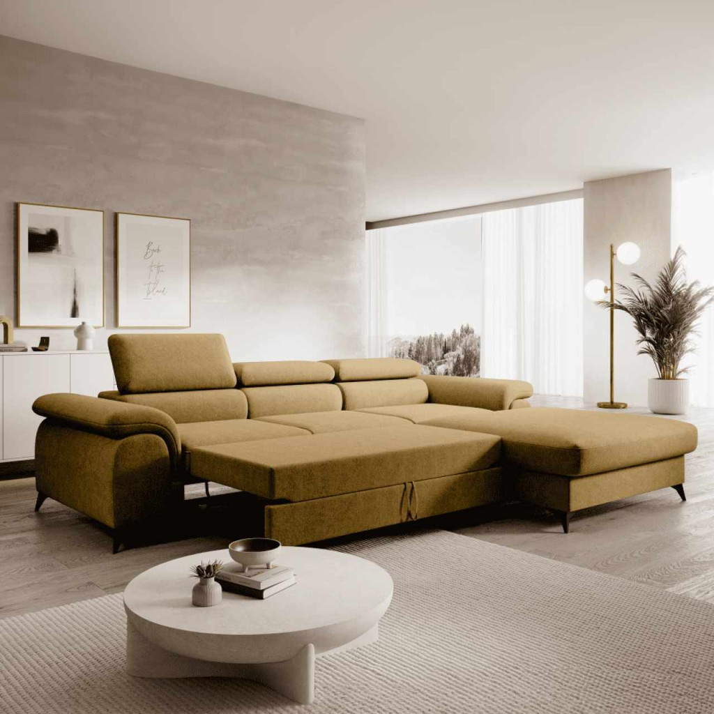 Kihúzható ülőgarnitúra, mustárszínű, jobbos, HORTY ROH , Sárga , Szövet