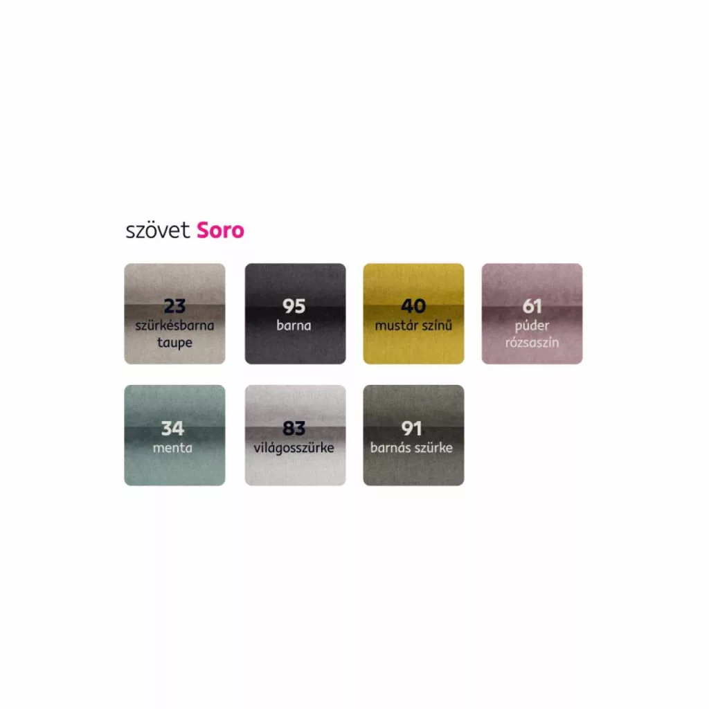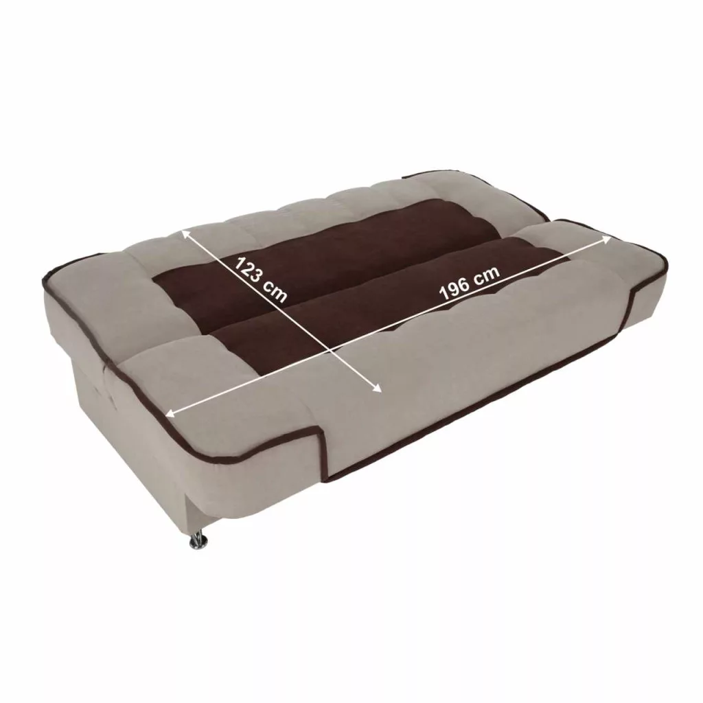 Anyag: szövet Soro 21/28A szövet kopásállósága a Martindale teszt szerint: 90 000 - 100 000 ciklusSzín: bézs/barnaMéretek (SzxMéxMa): 195x88x95 cmÜlés magassága: 48 cmÜlés mélysége: 53 cmAlvófelület (SzxHo): 115x190 cmFém lábakLábak színe: krómAz alsó tér magassága a padlótól: 5 cmTöltet: bonellrugó/poliuretán habKihúzhatóTeherbírás/személy: 90 kgTárhellyelPraktikusModernKlasszikus stílusKét díszpárnával szállítjukSzétszerelve szállítvaMegrendelhető a Soro szövet 7 színváltozatában ár 221 500 Ft. Egyedi megrendelés esetén az adott összeg 20%-át előlegként szükséges befizetni. Az előleg befizetése után a megrendelése gyártásba kerül. A szállítási idő 6-8 hét.