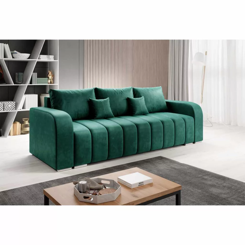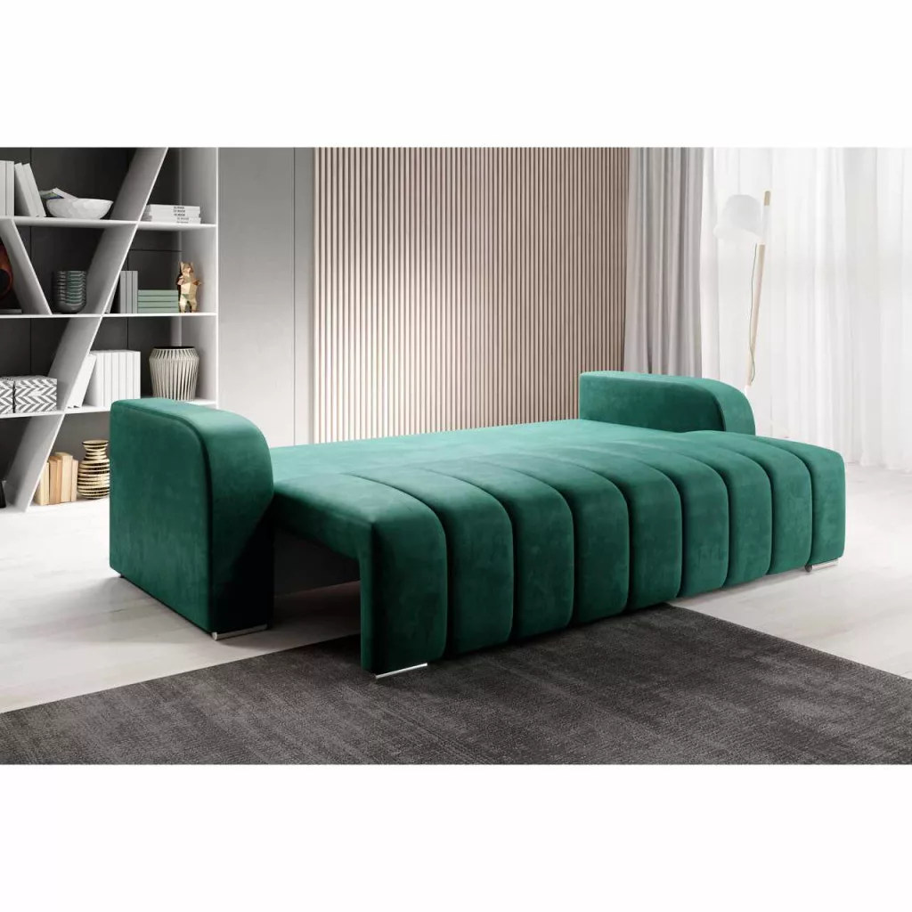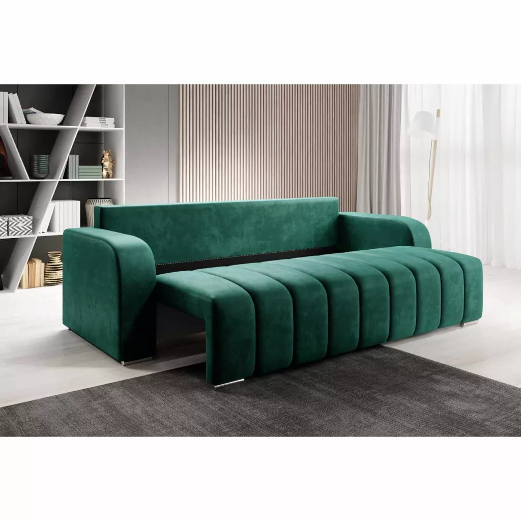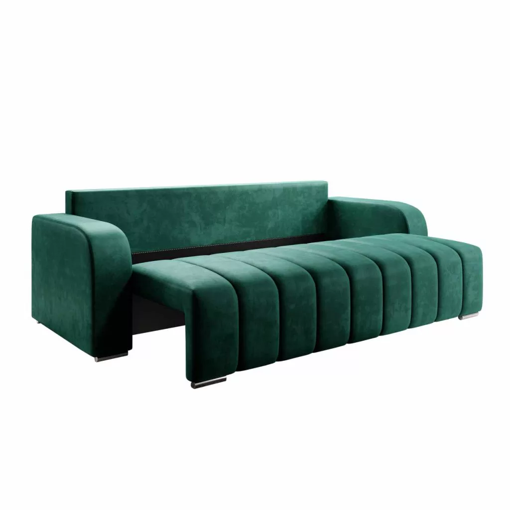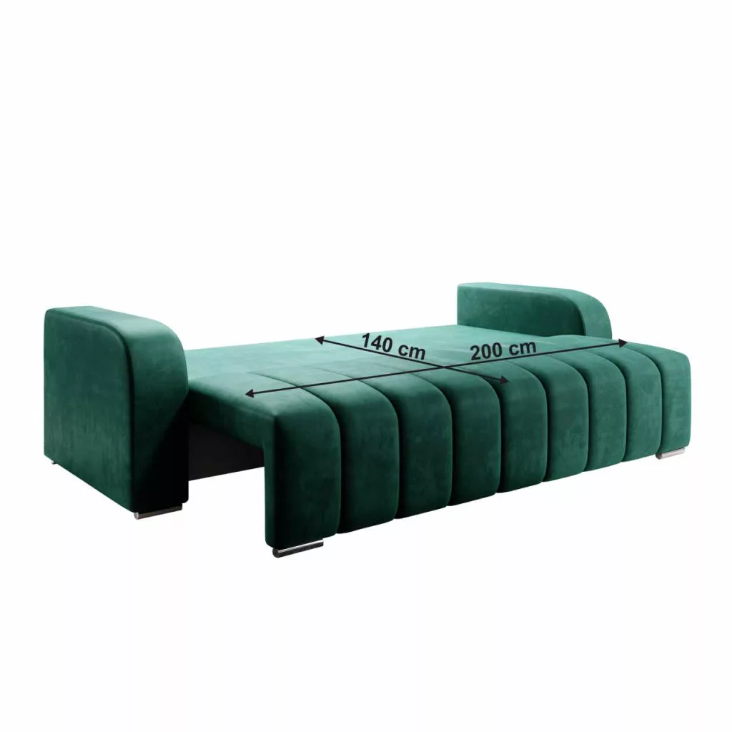 Kárpit anyaga: Monolith 37A szövet kopásállósága a Martindale teszt szerint: 100 000 ciklusKárpit színe: smaragdMéretek (SzxMéxMa): 245x90x86 cmAlvófelület (SzxHo): 140x200 cmÜlés magassága: 47 cmÜlés mélysége: 57 cmLábakonLábak anyaga: műanyagLábak színe: ezüstAz alsó tér magassága a padlótól: 3 cmTeherbírás/személy: 90 kgTöltet: bonellrugó+poliuretán habKihúzhatóTeljesen kárpitozottDekoratív steppelésVízálló anyagTárhellyelPárnákkal szállítva3 nagy párna2 kis párnaNagy párnák mérete (SzxMa): 67x50 cmKis párnák mérete (SzxMa): 38x38 cmSzétszerelve szállítva