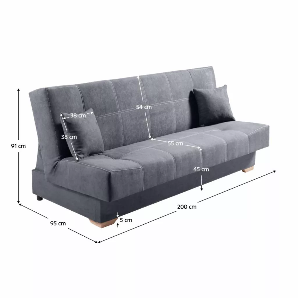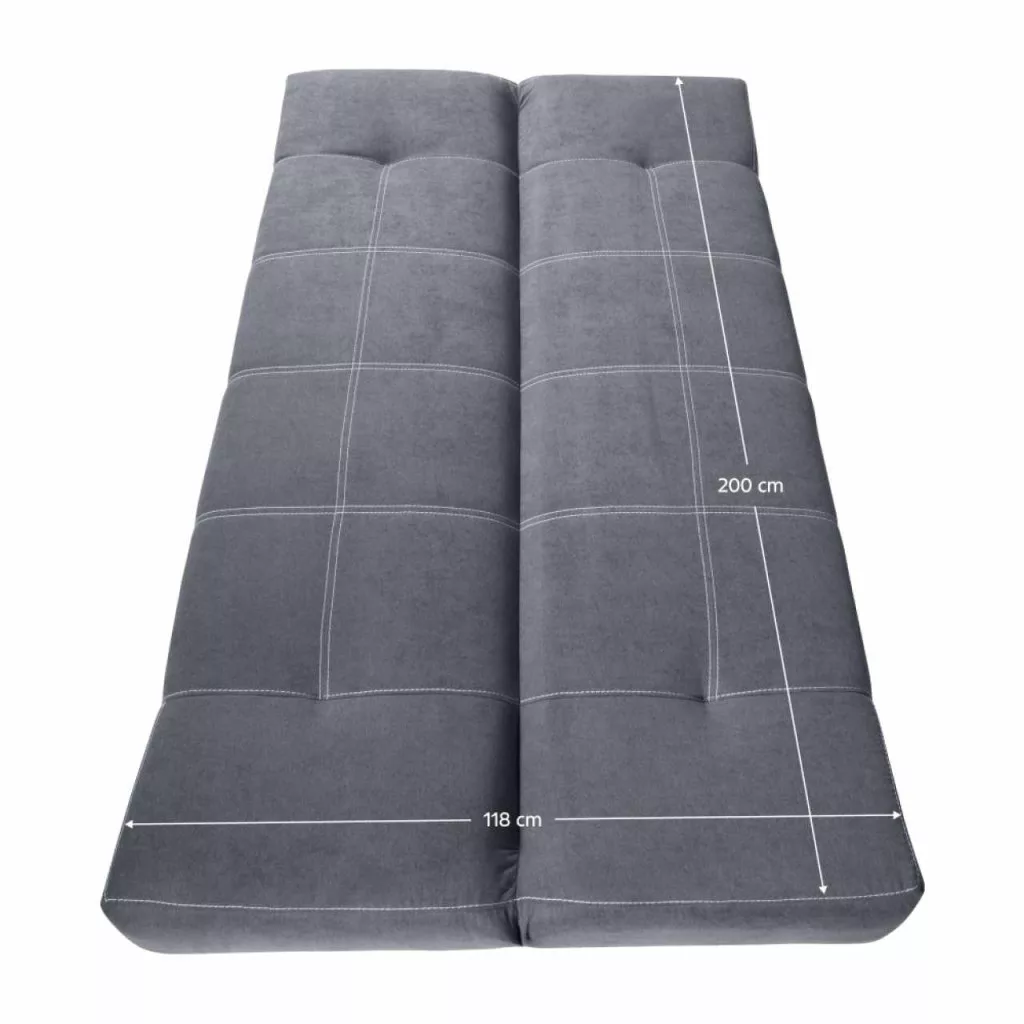Anyag: Twist 20 szövetA szövet kopásállósága a Martindale teszt szerint: 45 000 ciklusSzín: szürkeMéretek (SzxMéxMa): 200x95x91 cmÜlés mélysége: 55 cmÜlés magassága: 45 cmAlvófelület (SzxHo): 118x200 cmHáttámla magassága: 54 cmFa lábakAz alsó tér magassága a padlótól: 4,5 cmFehér varratTöltet: bonellrugó/purhabTeherbírás/személy: 90 kgKinyithatóTárhellyelKét párnával szállítvaPárnák mérete (SzéxMé): 38x38 cmModernPraktikusKlasszikusSzétszerelve szállítva