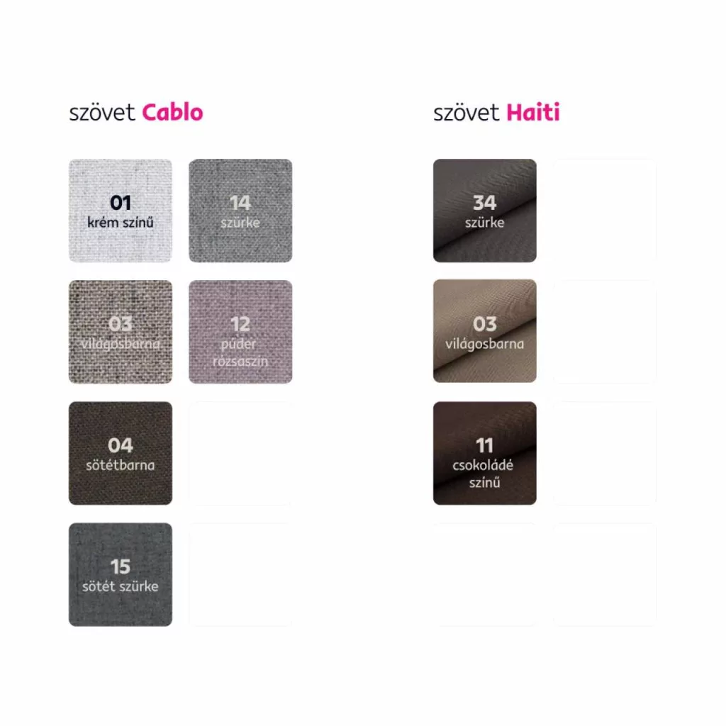 Kinyitható kanapé rakodótérrel, jobbos, LAUREL Anyag: szövet A szövet kopásállósága: 70 000 Martindale Szín: szürke-fekete Méretek (SzéxMéxMa): 149x90x80 cm Fekvőterület (SzéxH): 80x195 cm Ülőrész magassága: 40 cm Ülőrész mélysége: 83 cm Az alsó tér magassága a padlótól: 10 cm Teherheltőség: 90 kg Két párna Szállítás szétszerelve További 3 színváltozatban is elérhető. Rendelhető 3 színváltozatban Haiti szövetből vagy a 6 színváltozatban Cablo szövetből ár: 188 500 Ft. Egyedi megrendelés esetén szükség van az adott összegnek a 20%-át befizetni,mint előleg. Az előleg befizetése után az Ön követelményét benyújtjuk a gyártónak. Szállítási idő: 6-8 hét.