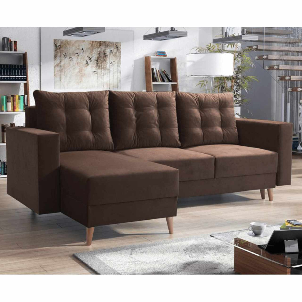 Kinyitható ülőgarnitúra, barna, balos, BLEKY ROH , Barna , Szövet