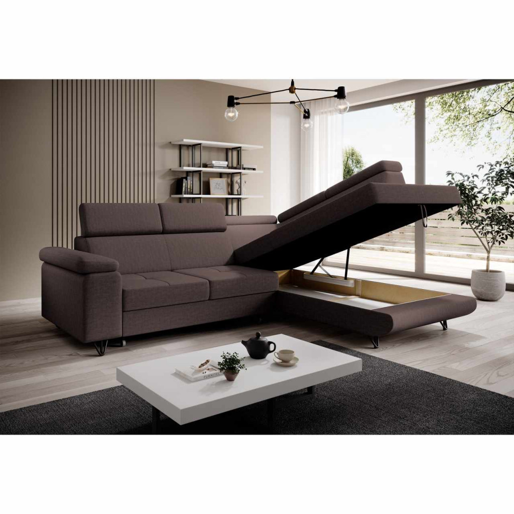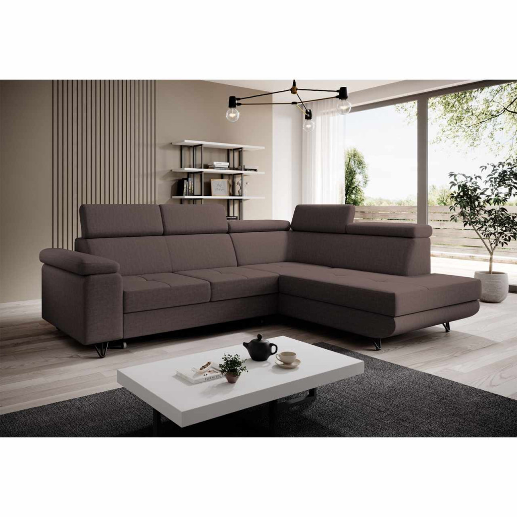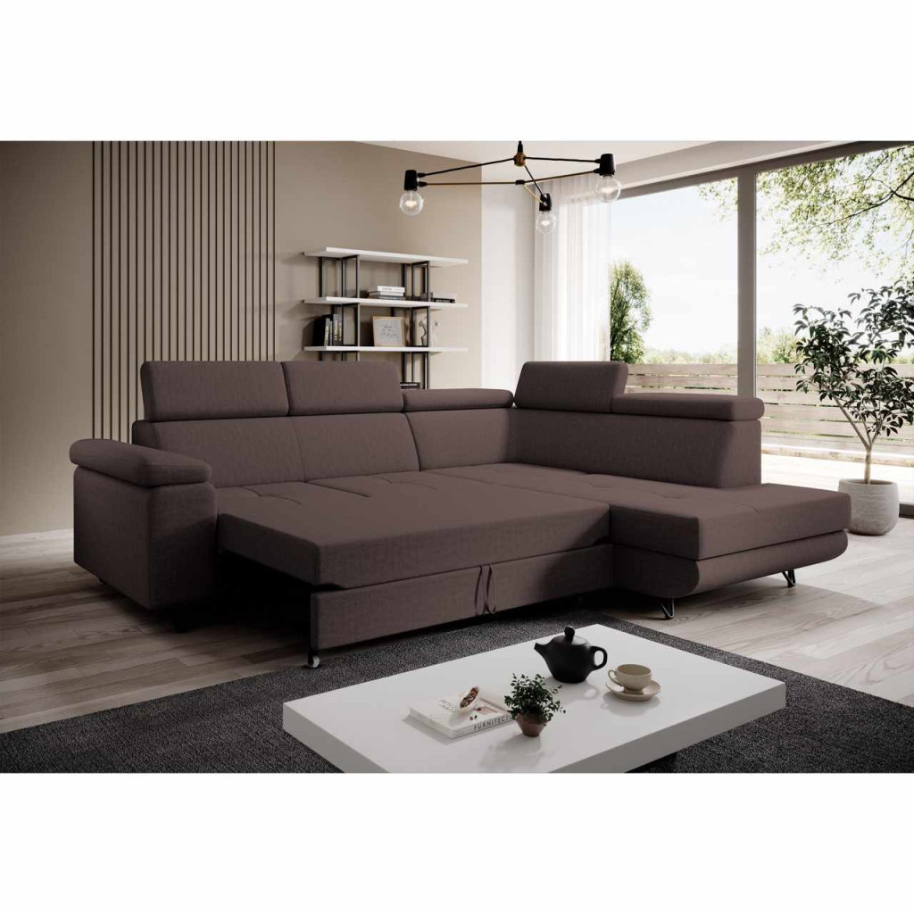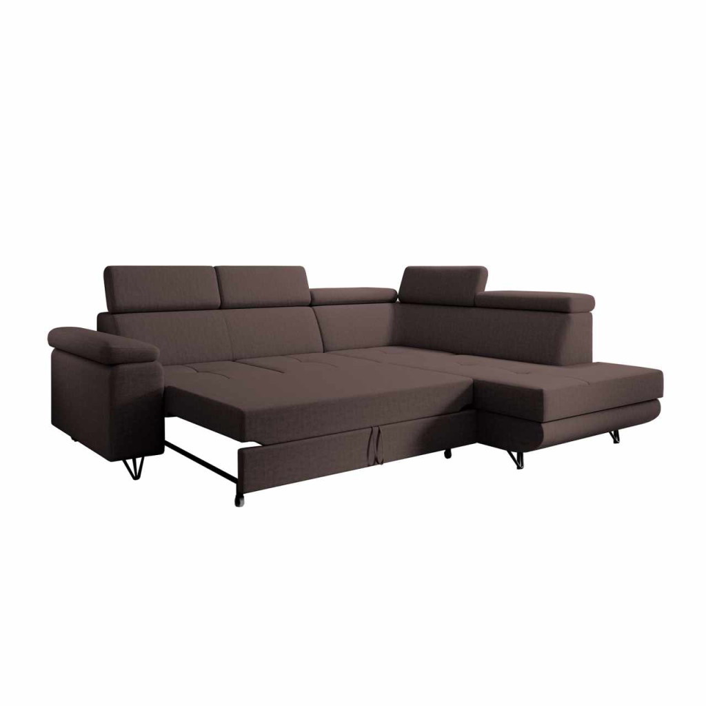Kinyitható ülőgarnitúra, barna, jobbos, JOGI ROH , Barna , Szövet