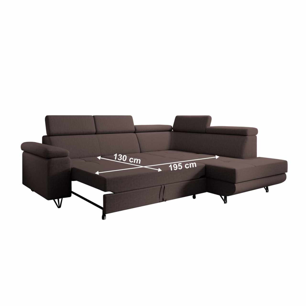 Anyag: szövet Soro 28A szövet kopásállósága a Martindale teszt szerint: 90 000 ciklusSzín: barnaMéretek (SzxMéxMa): 250x183x76/90 cmÜlés magassága: 42 cmÜlés mélysége: 60 cmAz alsó tér magassága a padlótól: 12 cmKinyithatóAlvófelület (SzxHo): 130x195 cmHáttámla magassága: 50 cmOttomán szélessége: 91 cmKarfa (MéxMa): 23x61 cmTeherbírás: 90 kgSarokTárhellyelDekoratív steppelésRugós töltet5 állítható fejtámlaFém lábakonLábak színe: feketeTöltet: Falista rugó/pur hab T30Teljesen kárpitozottJobbos kivitelezésDíszpárnák nélkül szállítvaSzétszerelve szállítvaA kanapé a Soro szövet 7 színváltozatában megvásárolható ár 537 900 Ft. Egyedi megrendelés esetén az összeg 20%-át előlegként szükséges befizetni. Az előleg befizetése után a megrendelése gyártásba kerül. A szállítási idő 6-8 hét.