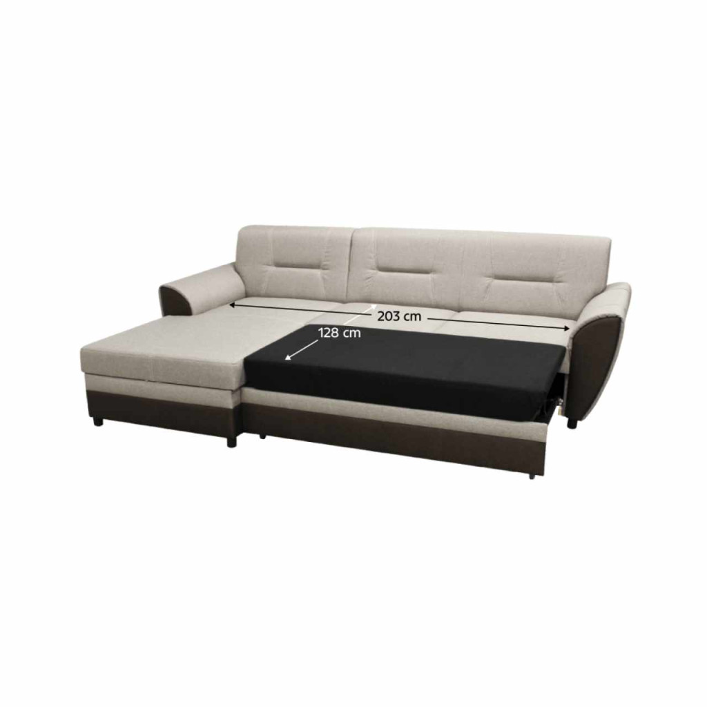Anyag: Malmo szövet 28/16 TaupeA szövet kopásállósága a Martindale teszt szerint: 30 000 ciklusSzín: barna/szürkésbézs Méretek (SzxMéxMa): 250x16x83 cmÜlés magassága: 41 cmÜlés mélysége: 57 cmAz alsó tér magassága a padlótól: 5 cmKinyithatóAlvófelület (SzéxHo): 128x203 cmHáttámla magassága: 46 cmOttomán szélessége: 86 cmÜlőrész szélessége: 136 cmSarokTárhellyelDekoratív varrás a hátoldalonTöltet: falista rugó/purhabMűanyag lábakonLábak színe: feketeTeljesen kárpitozottBalos kivitelezésPárnák nélkül szállítvaSzétszerelve szállítva