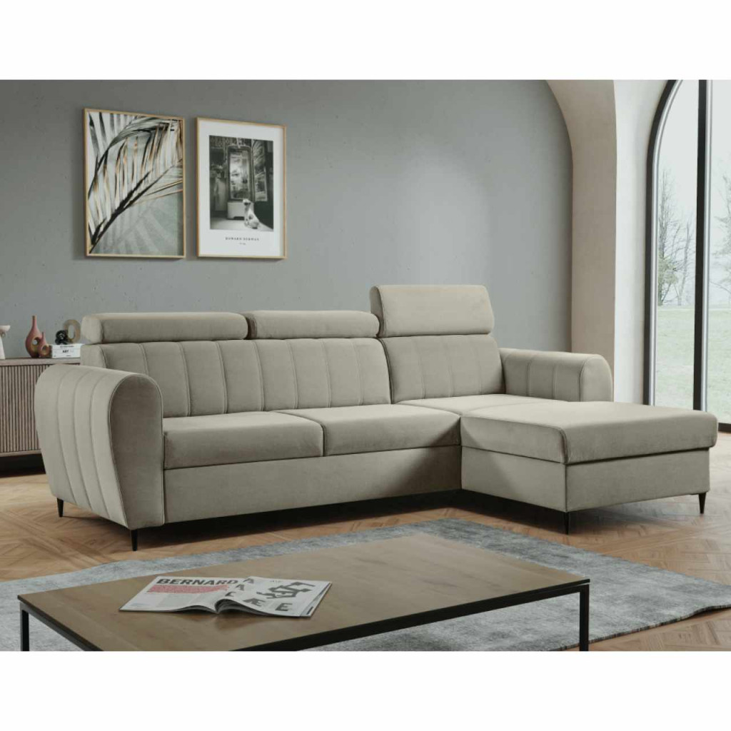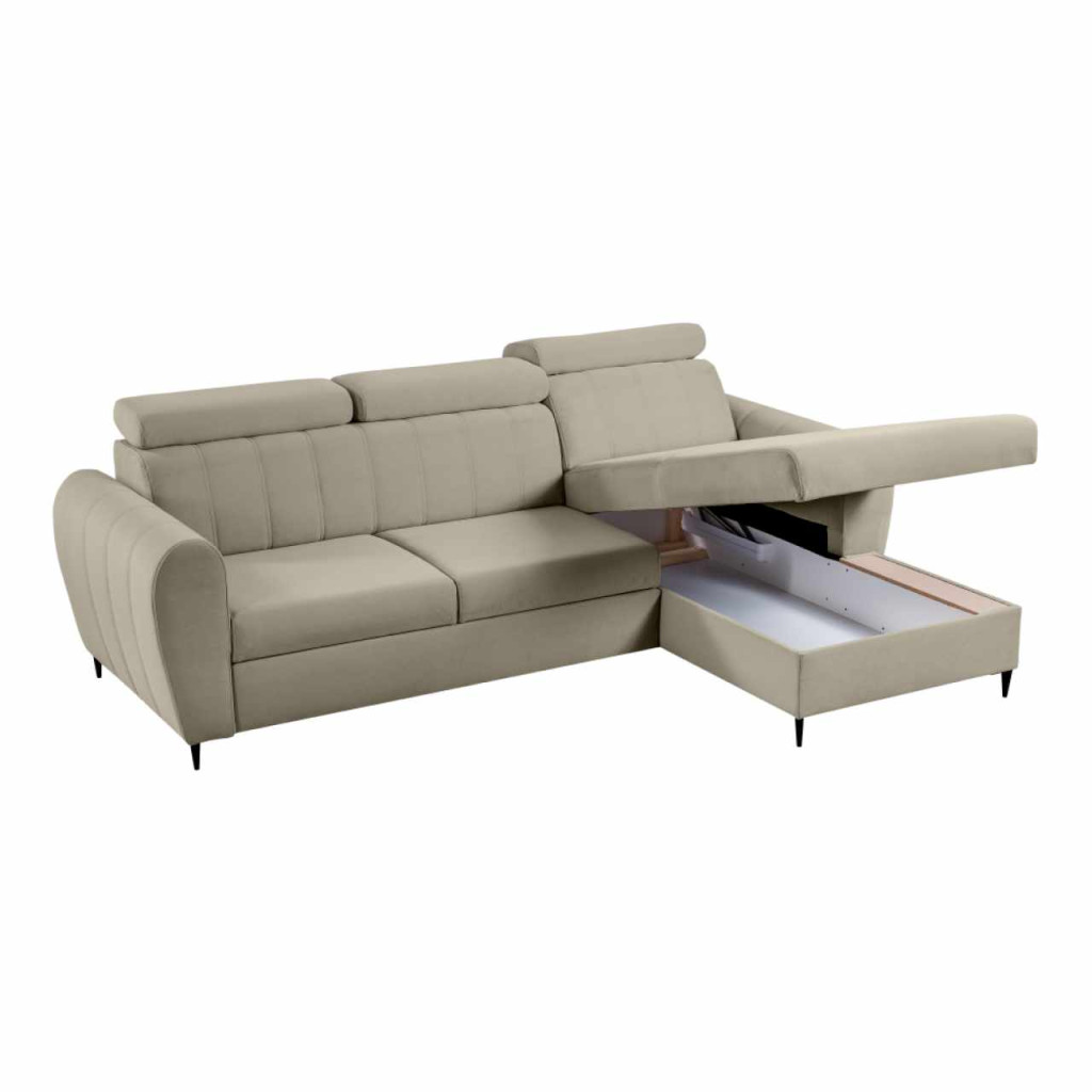 Kinyitható ülőgarnitúra, bézs, jobbos, KORIO , Bézs , Szövet