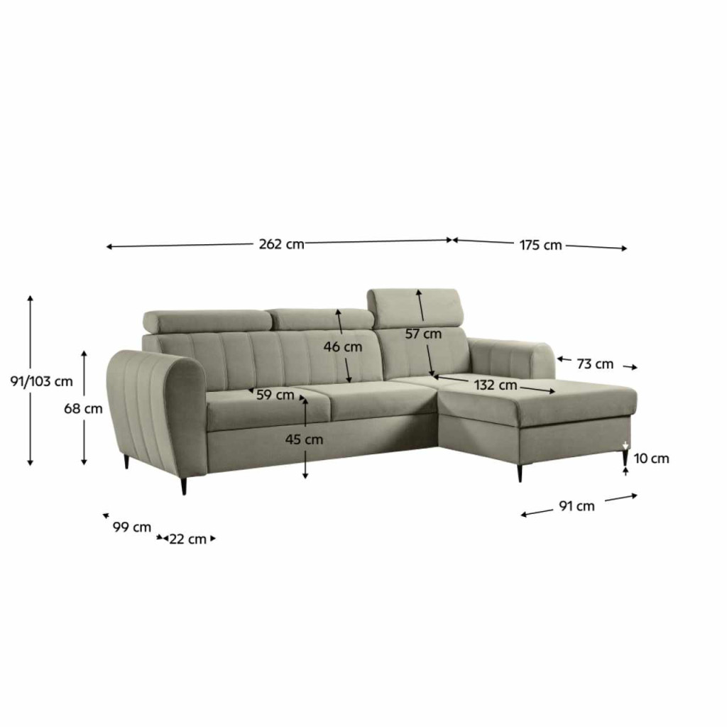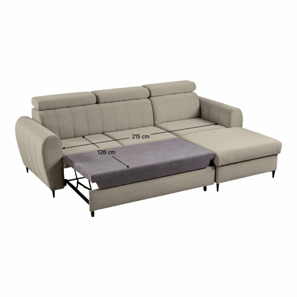 Kárpit anyaga: szövet Paros 02A szövet kopásállósága a Martindale teszt szerint: 50 000Kárpit színe: bézsMéretek (SzxMéxMa): 262x175x91/103 cmAlvófelület (SzxHo): 128x215 cmÜlés magassága: 45 cmÜlés mélysége: 59 cmOttomán szélessége: 91 cmOttomán mélysége: 132 cmKarfák méretei (SzxMéxMa): 22x99x68 cmAz alsó tér magassága a padlótól: 10 cmLábakonLábak anyaga: fémLábak színe: feketeTeherbírás/személy: 90 kgTöltet: Falista rugó + Pur habKinyithatóSarokTeljesen kárpitozottJobbos kivitelezésTárhellyel3 fejtámasz6 fokozatban állítható fejtámaszSzétszerelve szállítvaA Paros szövet 4 színváltozatában megrendelhető, a szállítási idő 6-8 hét. Egyedi megrendelés esetén az összeg 20%-át előlegként szükséges befizetni. Az előleg befizetése után a megrendelése gyártásba kerül.