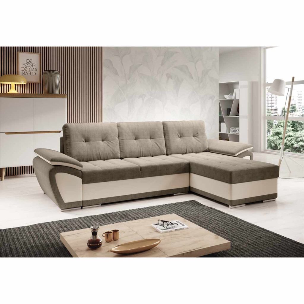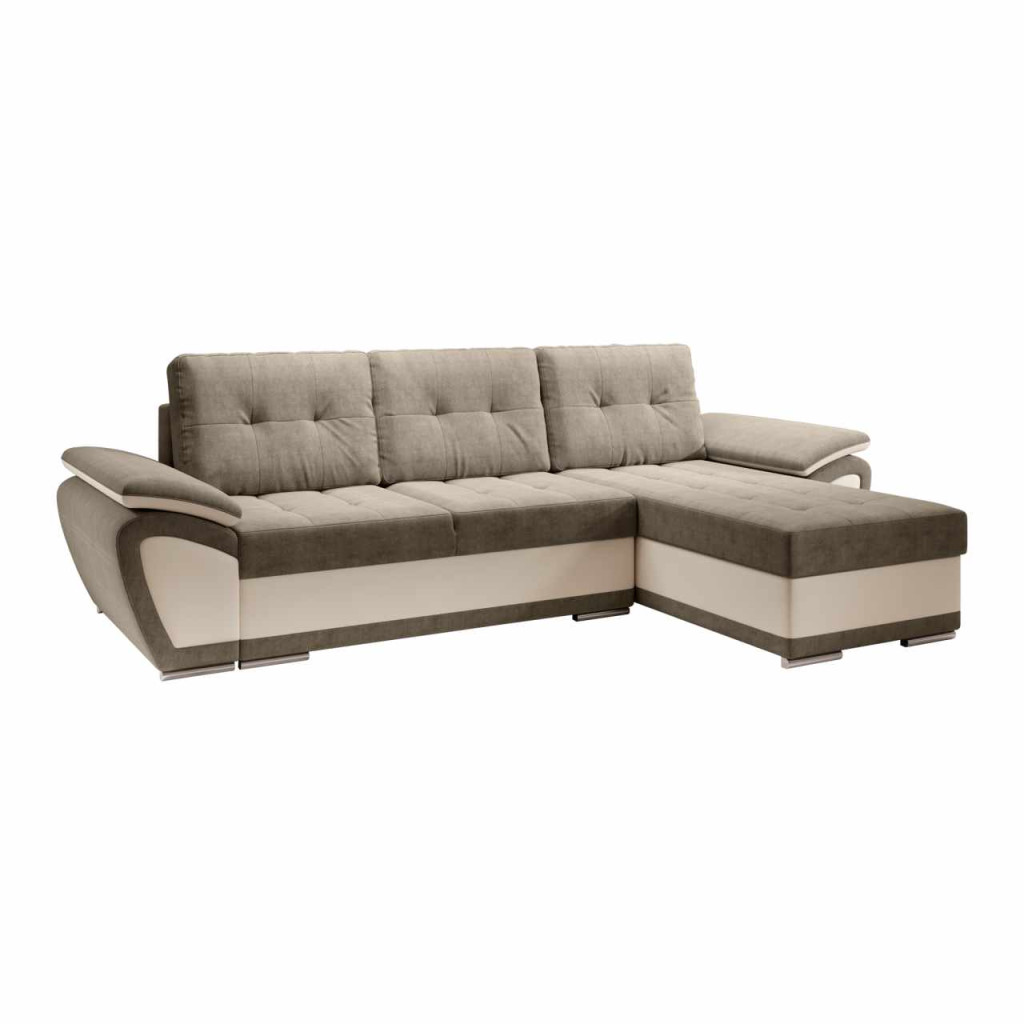 Kinyitható ülőgarnitúra, bézs/világosbarna, jobbos, ENIF ROH , Bézs , Ekobőr