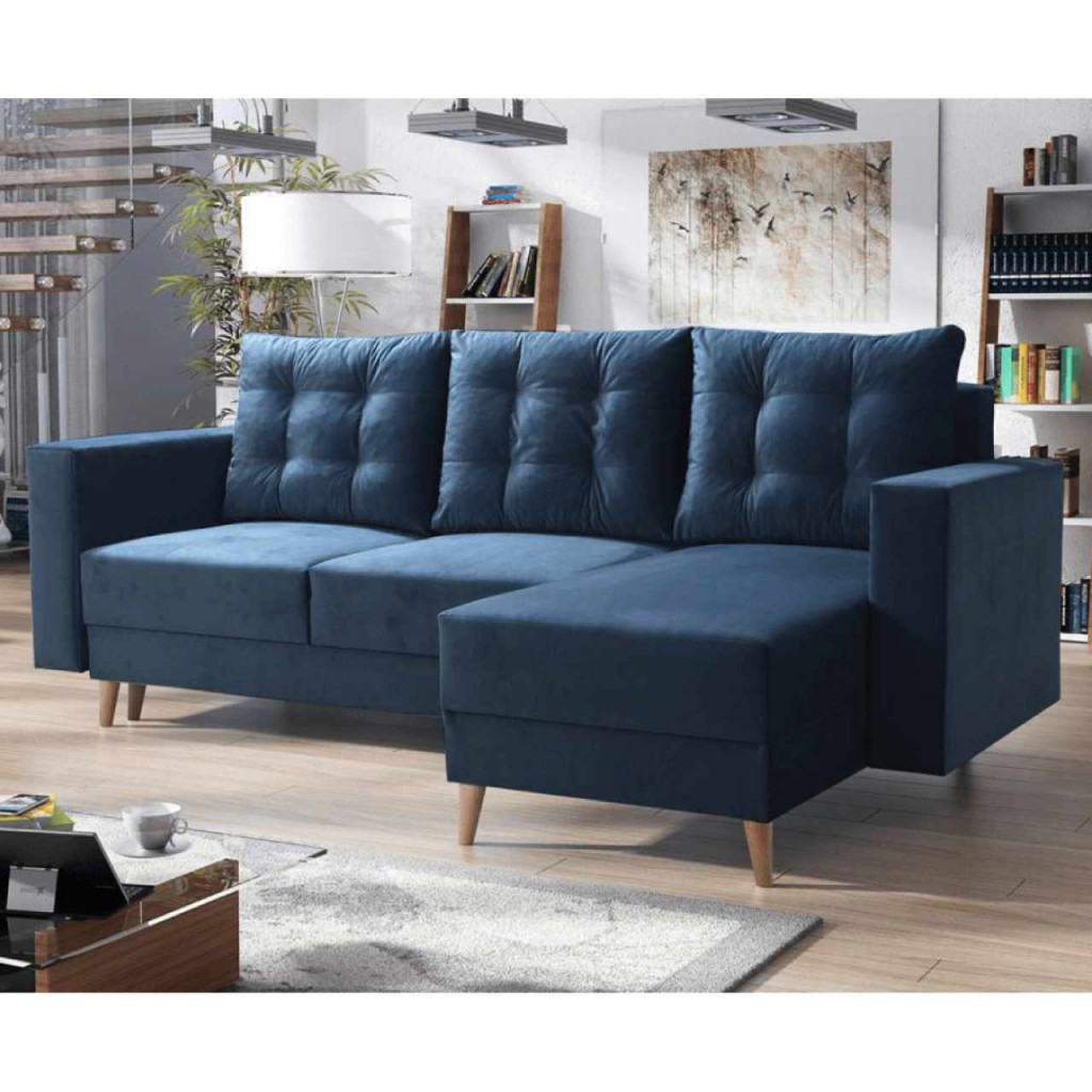 Kinyitható ülőgarnitúra, kék, jobbos, BLEKY ROH , Kék , Szövet