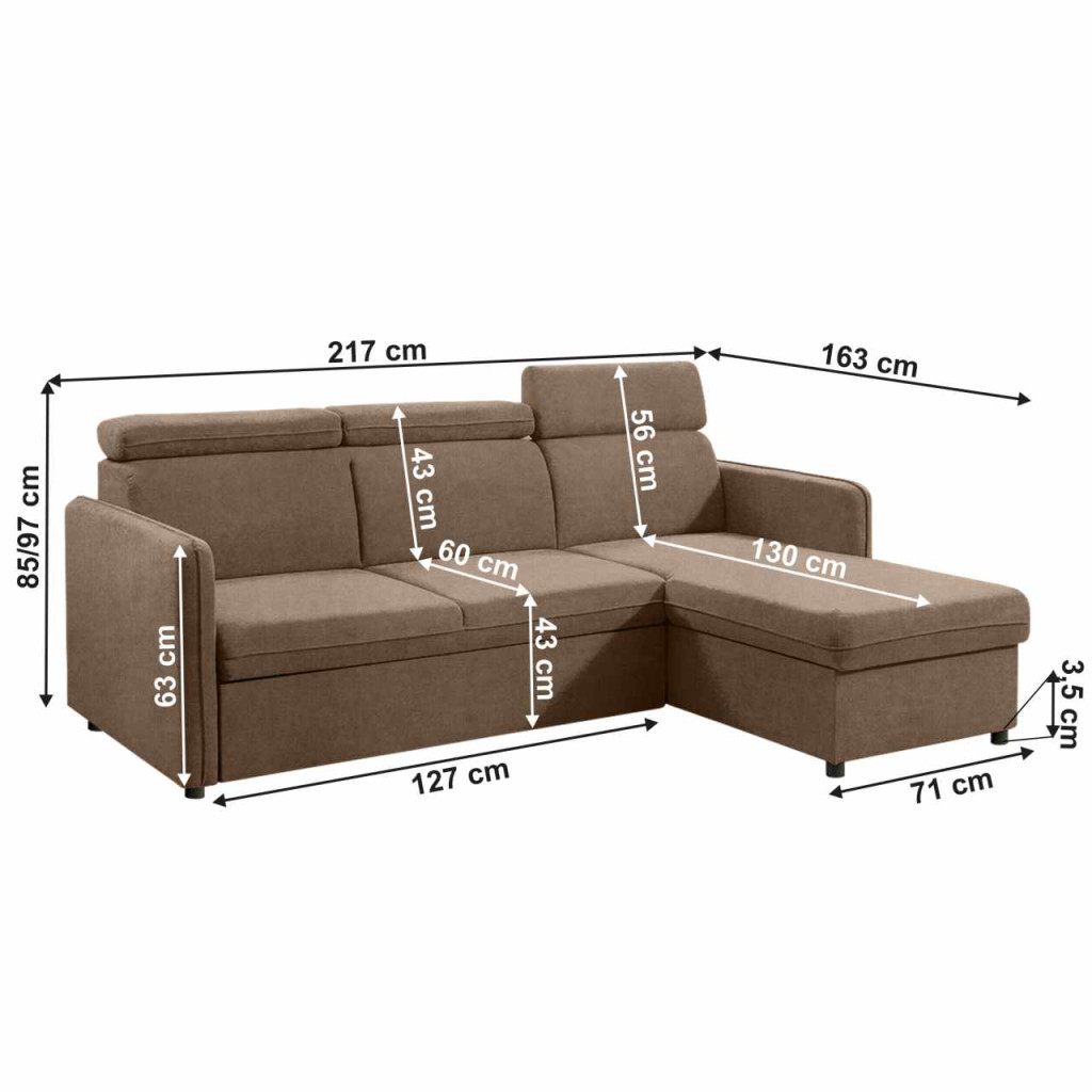 Kárpit anyaga: szövet Enjoy 37A szövet kopásállósága a Martindale teszt szerint: 45 000Kárpit színe: szürkésbarna TaupeMéretek (SzxMéxMa): 217x163x85/97 cmAlvófelület (SzxHo): 128x200 cmÜlés magassága: 43 cmÜlés mélysége: 60 cmHáttámla magassága: 56 cmOttomán szélessége: 71 cmOttomán mélysége: 130 cmÜlőrész szélessége: 127 cmKarfák méretei (SzxMéxMa): 10x93x63 cmAz alsó tér magassága a padlótól: 3,5 cmMűanyag lábakLábak színe: feketeTeherbírás/személy: 90 kgTöltet: Falista rugóKinyithatóSarokTeljesen kárpitozottUniverzálisTárhellyelÁllítható fejtámlákSzétszerelve szállítvaMegrendelhető az Enjoy szövet 4 színváltozatában 6-8 hét szállítási idővel. Egyedi megrendelés esetén az összeg 20%-át előlegként szükséges befizetni. Az előleg befizetése után a megrendelése gyártásba kerül.