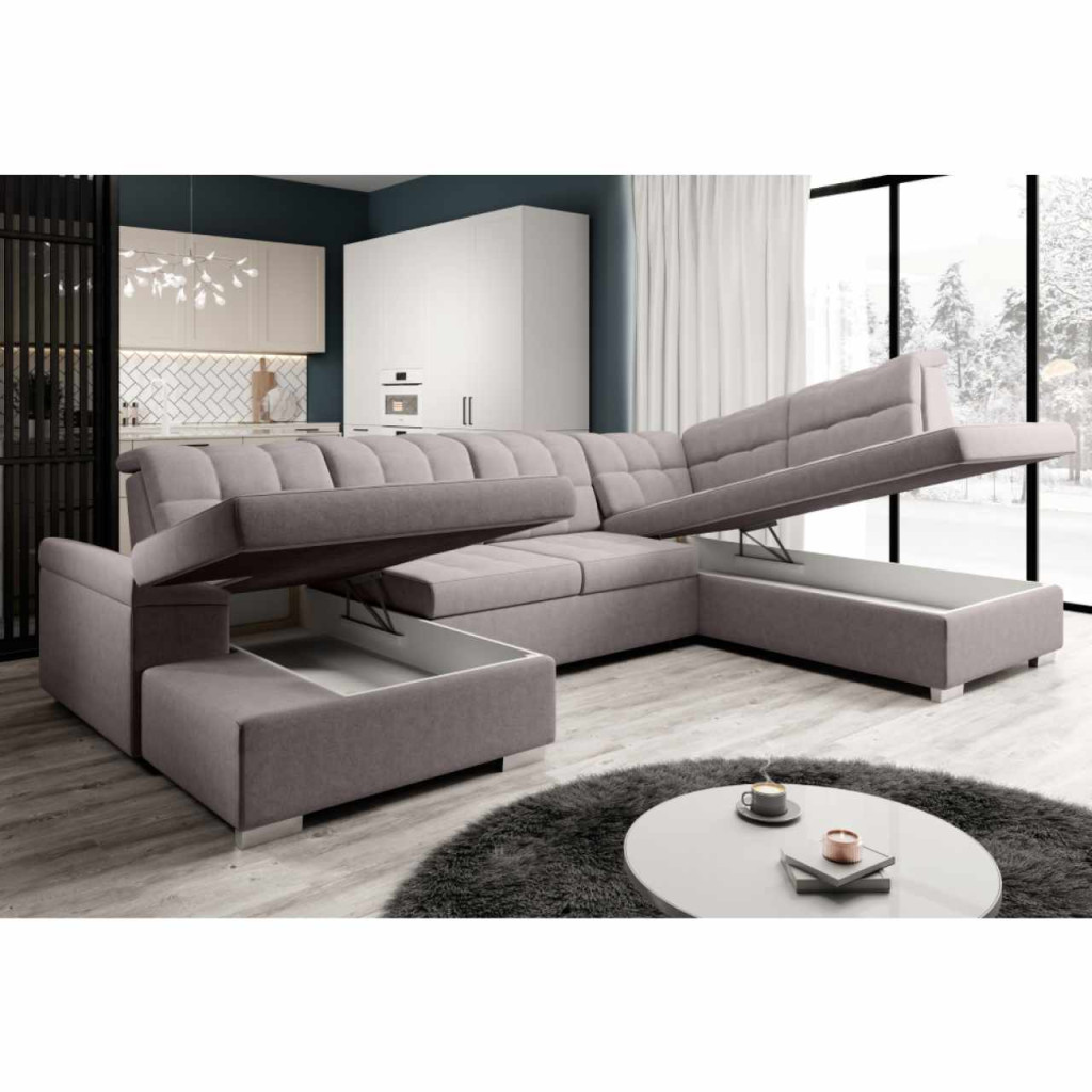 Kinyitható ülőgarnitúra, szürkésbézs Taupe, jobbos, OREO U , Szürke , Szövet