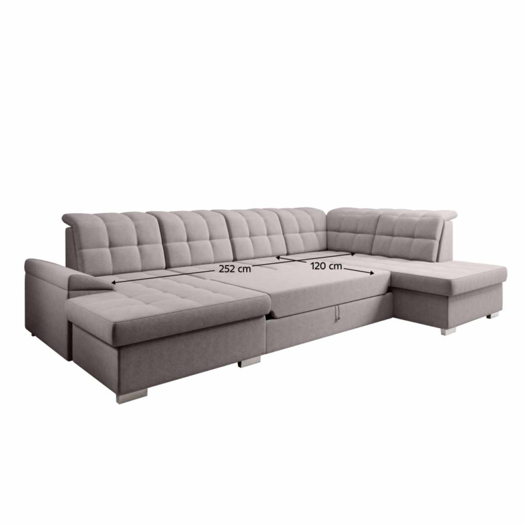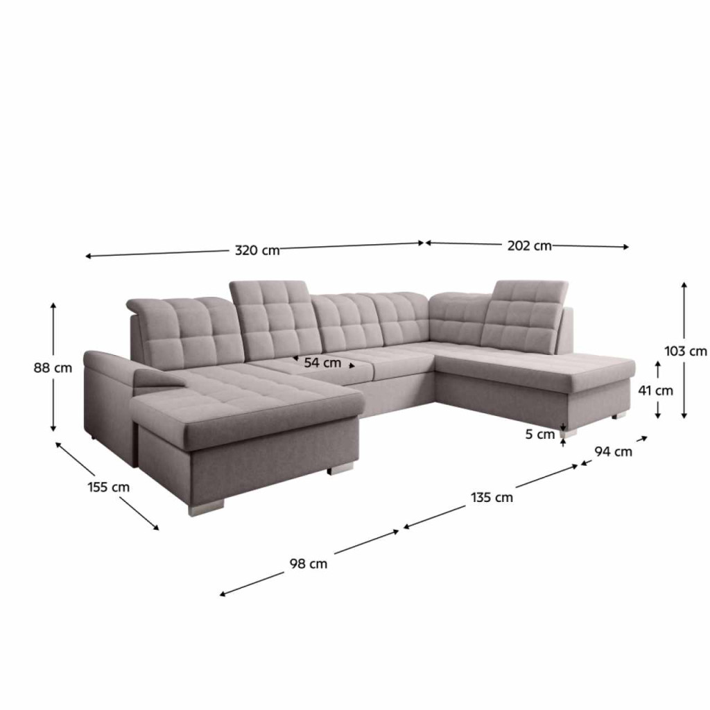 Kárpit anyaga: szövet Soro 23A szövet kopásállósága a Martindale teszt szerint: 90 000 ciklusKárpit színe: szürkésbézs TaupeMéretek (SzxMéxMa): 320x202/155x88/103 cmAlvófelület (SzxHo): 120x252 cmÜlés magassága: 41 cmÜlés mélysége: 54 cmOttomán szélessége: 98 cmÜlőrész szélessége: 135 cmLábakonLábak anyaga: műanyagLábak színe: ezüstAz alsó tér magassága a padlótól: 5 cmTeherbírás/személy: 90 kgTöltet: falista rugó + poliuretán habKihúzhatóSarokTeljesen kárpitozottU alakKét tárhellyelÁllítható fejtámlákJobbos kivitelezésSzétszerelve szállítvaA Soro szövet 7 színárnyalatában rendelhető ár 808 900 Ft. A szállítási idő 6-8 hét. Egyedi megrendelés esetén az összeg 20%-át előlegként szükséges befizetni. Az előleg befizetése után a megrendelése gyártásba kerül.