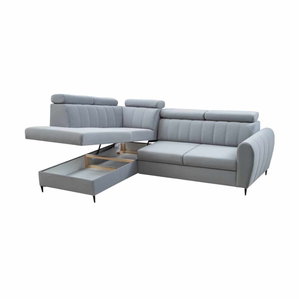 Kinyitható ülőgarnitúra, világosszürke, balos, KORIO L , Szürke , Szövet