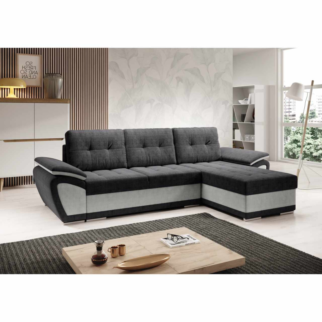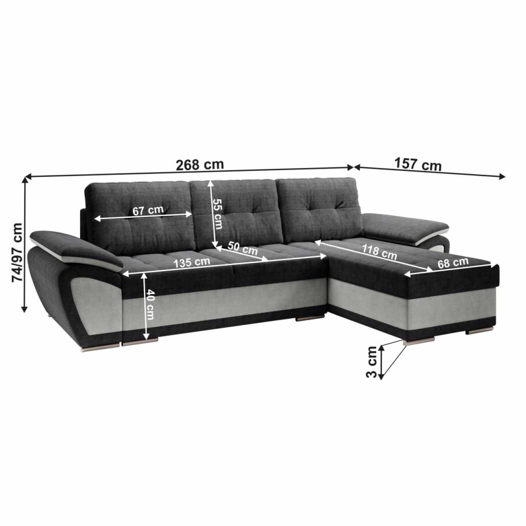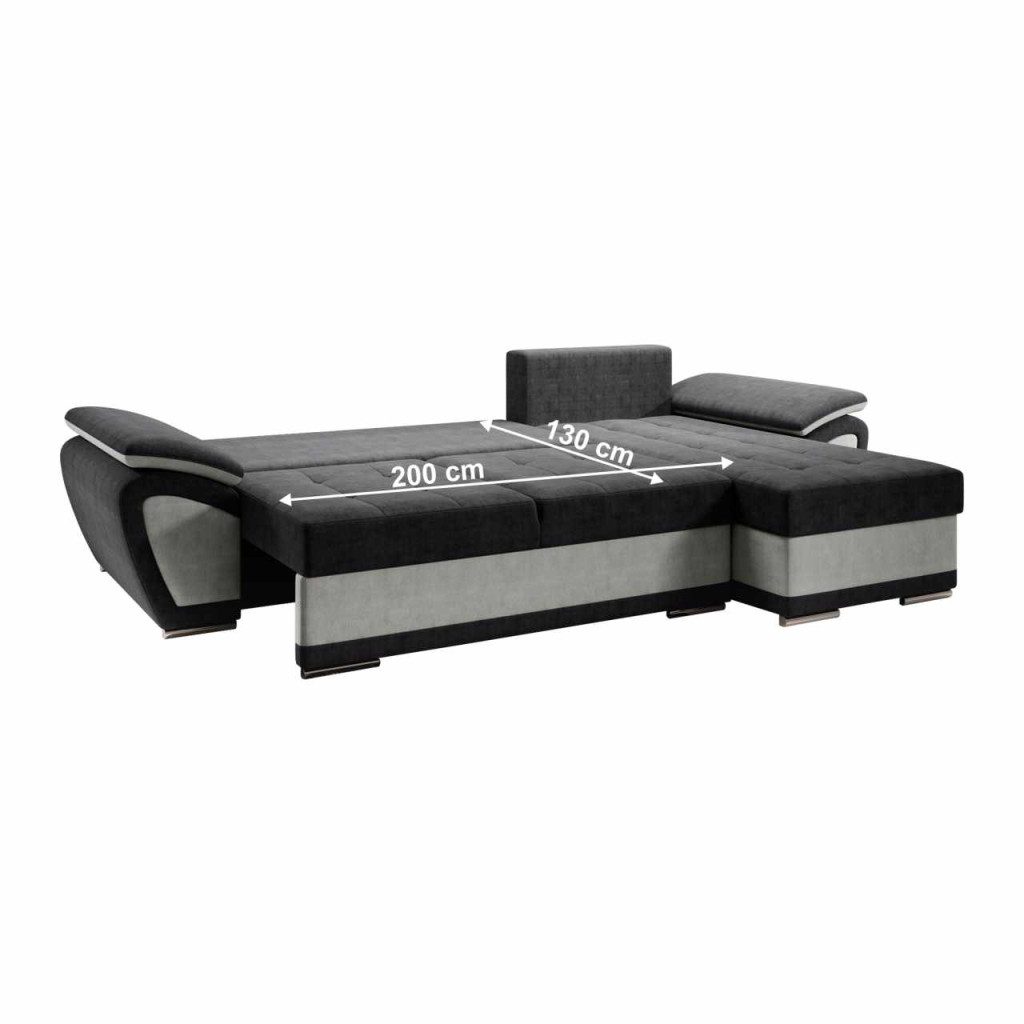 Anyag: szövet Orinoco 90/96A szövet kopásállósága a Martindale teszt szerint: 72 000 ciklusSzín: világosszürke/sötétszürkeMéretek (SzxMéxMa): 268x157x97 cmÜlés magassága: 40 cmÜlés mélysége: 50 cmAz alsó tér magassága a padlótól: 3 cmKinyithatóAlvófelület (SzxHo): 130x200 cmHáttámla magassága: 50 cmOttomán méretei (SzéxMé): 68x118 cmKarfa (SzéxMé): 31x90 cm Teherbírás/személy: 90 kgSarokTárhellyelDekoratív steppelésTöltet: Falista rugó/pur habMűanyag lábakonLábak színe: ezüstTeljesen kárpitozottJobbos kivitelezésHárom párnával szállítvaPárnák méretei (SzéxMé): 67x55 cmSzétszerelve szállítva