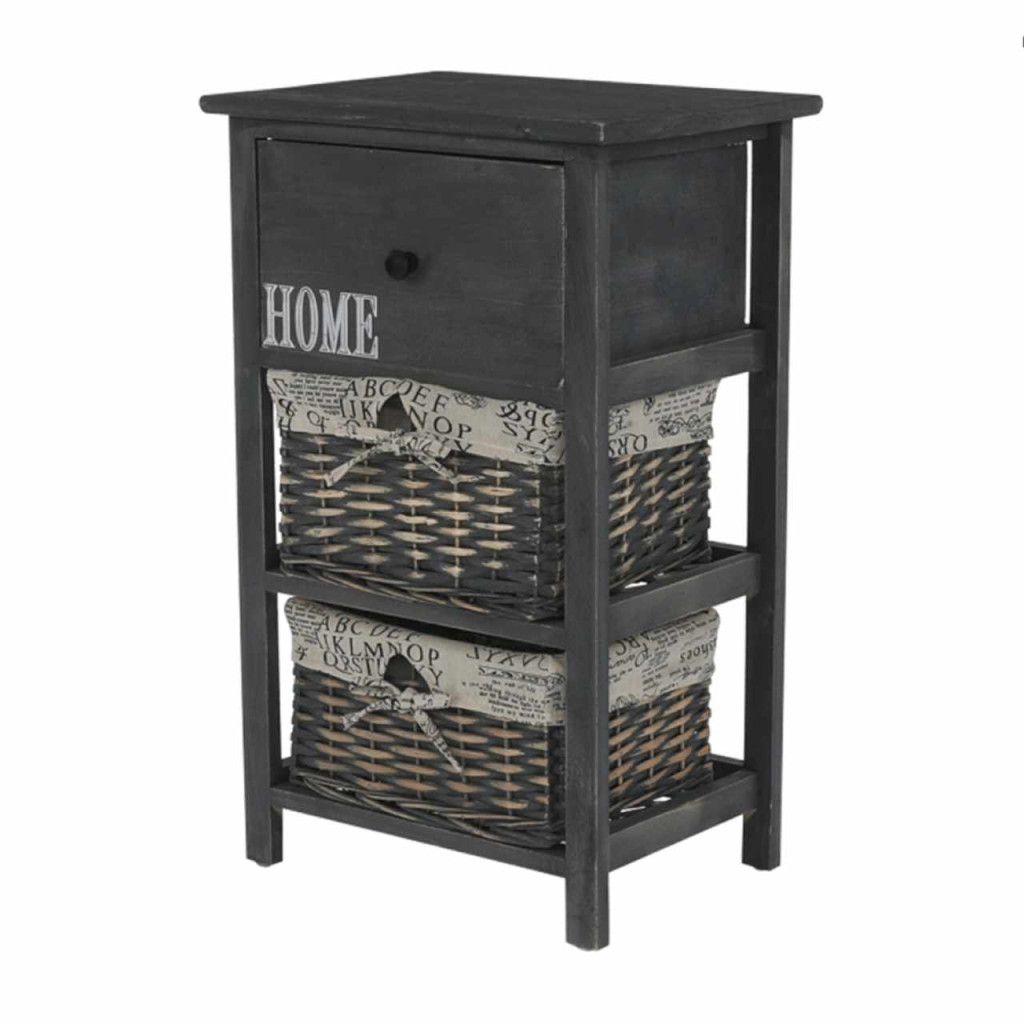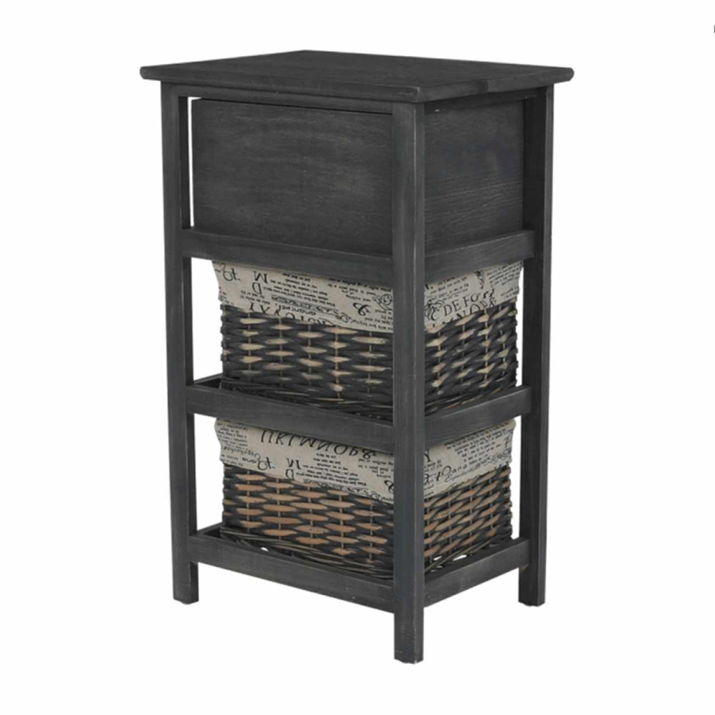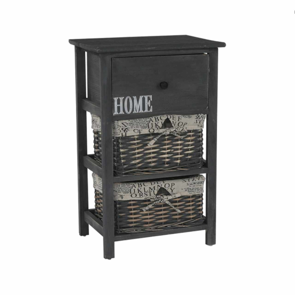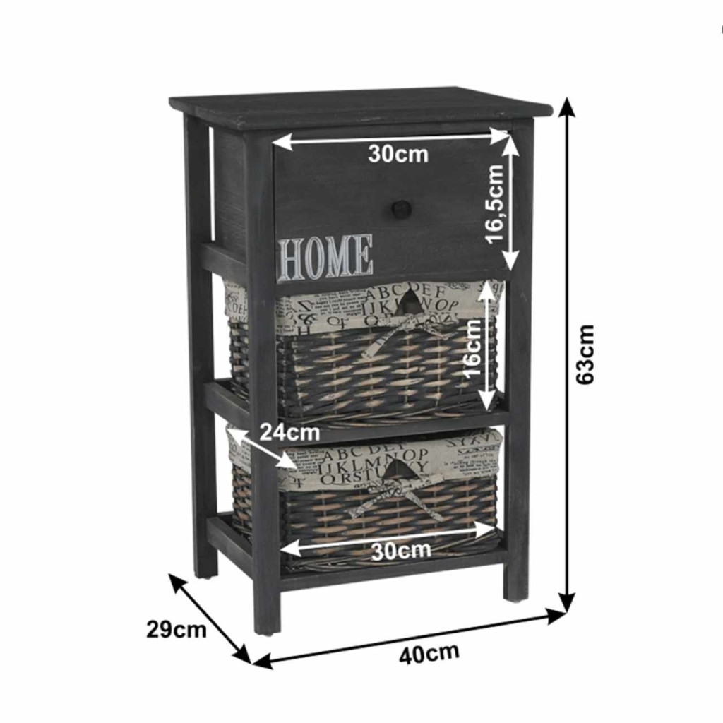 Komód szilárd kerettel, Fiókkal és 2 fonott kosárral, Anyag: fa / vessző Színváltozat: sötétbarna Méret (SzéxMaxMé): 40x63x29 cm