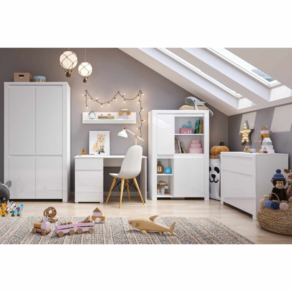 Komód 2D1S, fehér fényes, LINDY