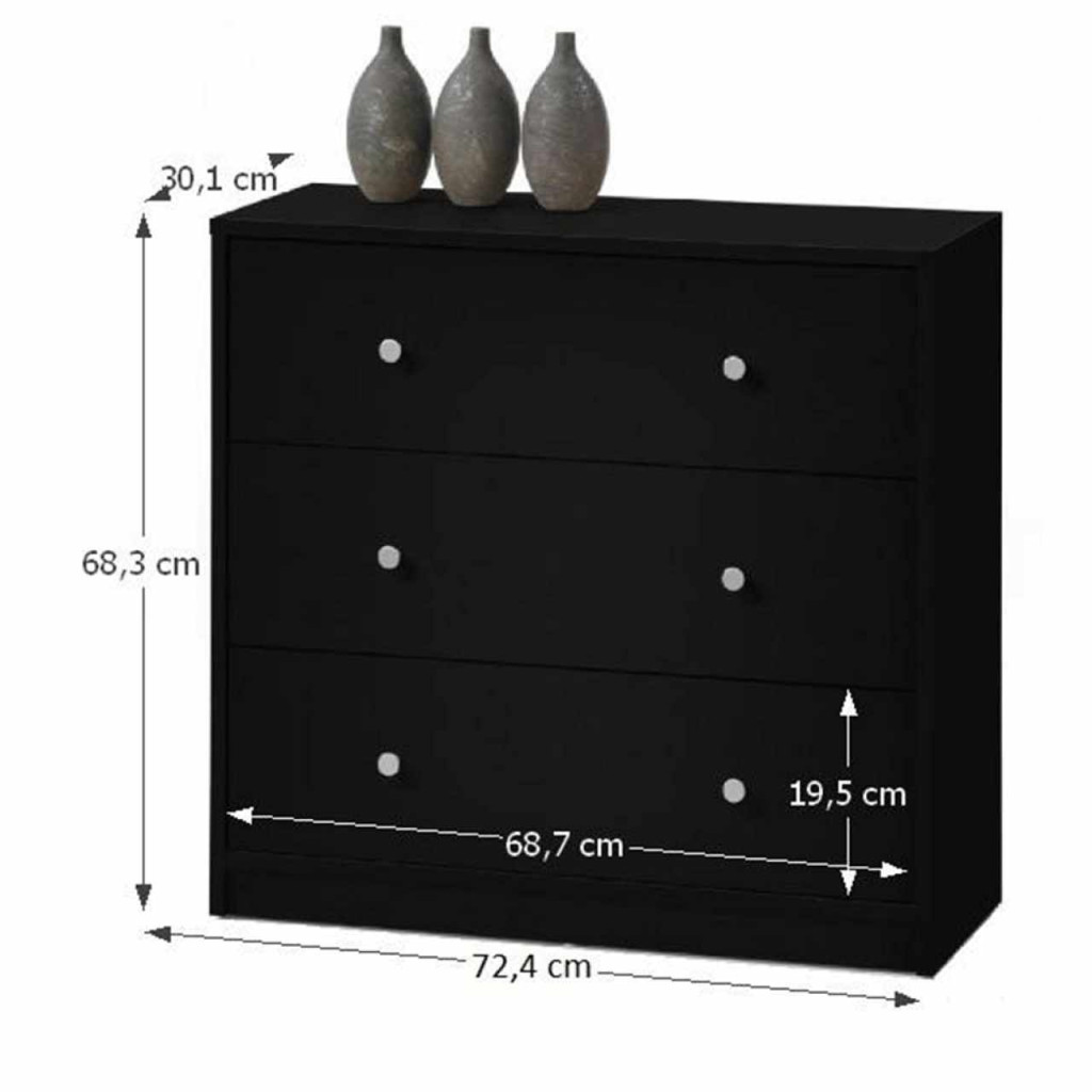 3 fiókos komód, MAY 3Színváltozat: feketeMéretek (SzéxMaxMé): 72,4x68,3x30,1 cmSzállítás szétszerelve.
