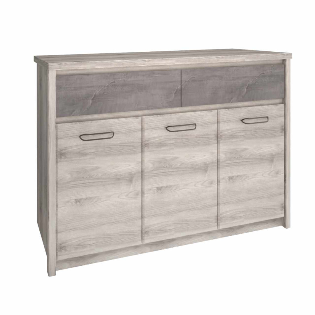 Anyag: laminált DTDSzín: nairobi gesztenye/onixMéretek (SzxMéxMa): 126,6x95,2x40,3 cmAnyag vastagsága: 1,6-3,2 cmMűanyag lábakFém fogantyúkFogantyúk színe: feketeHáromajtósKét fiókFiók teherbírása: 5 kgModern dizájnSzétszerelve szállítva