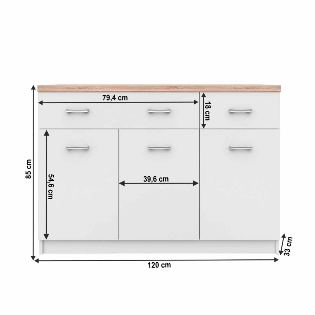 Komód 3D2S TOPTY Typ 07 Anyag: laminált DTD Változat: fehér/sonoma tölgy Méretek (SzéxMéxMa): 120x33x85 cm Váz vastagsága: 16 mm Felső lap vastagsága: 32 mm A modern elemes rendszer alkalmas az irodába, dolgozószobába, nappaliba vagy az előszobába"
