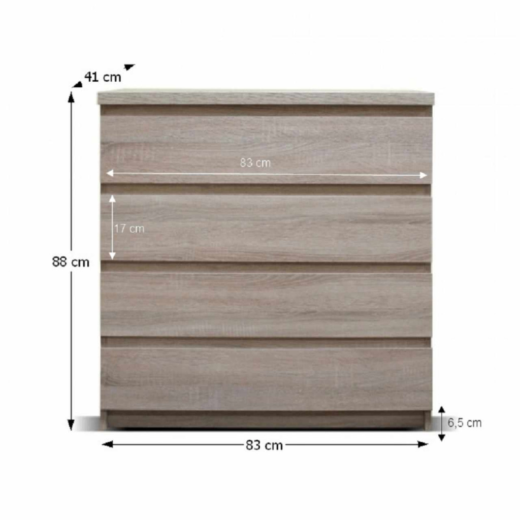 Komód, négy fiókos, TYP 05. Anyag: laminált DTD, ABS élek. Szín: tölgyfa sonoma. Méretek: SzéxMéxMa: 83x41x88 cm. Szétszerelve szállítjuk