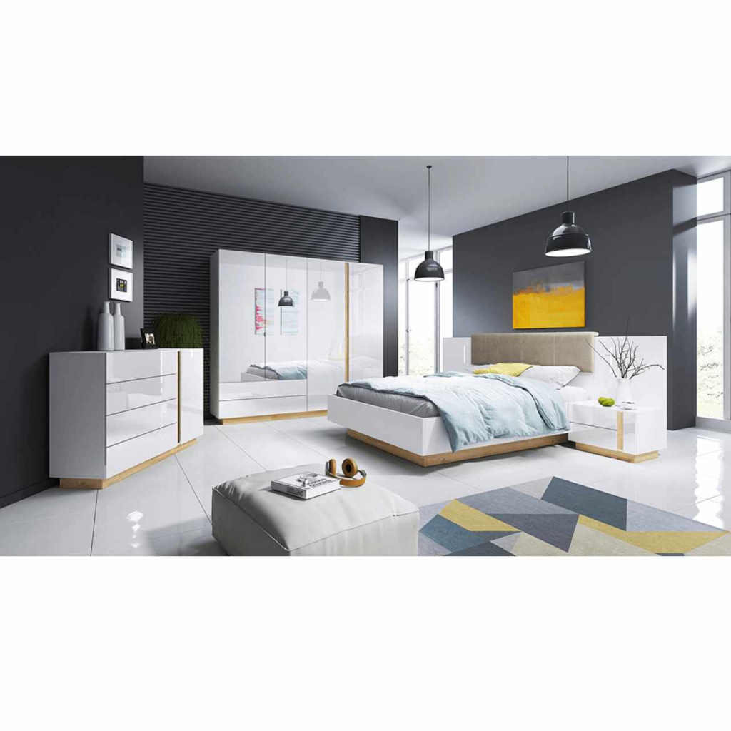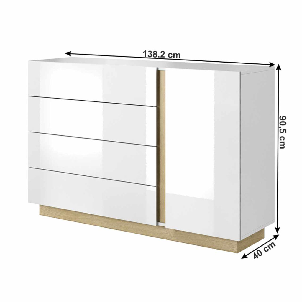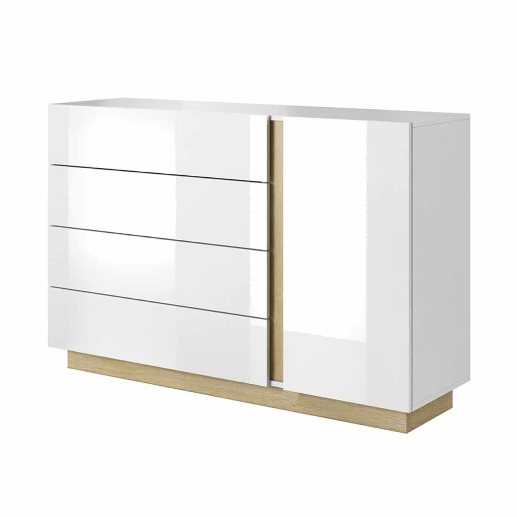 Komód, D4S, fehér, grandson tölgy/fehér magasfényű, CITY
