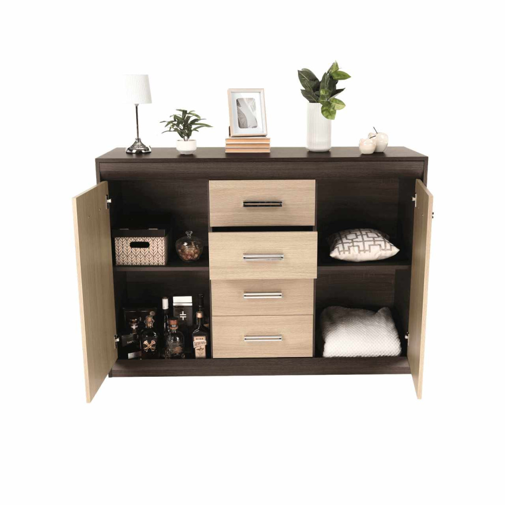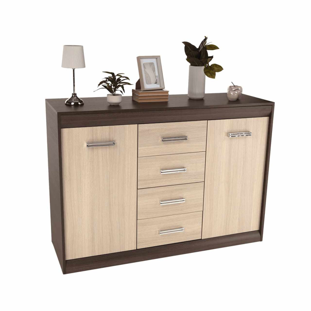 Komód, DTD/MDF, tölgy világos/tölgy sötét, KORINA