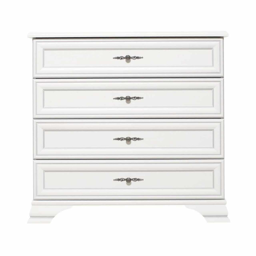 Anyag: laminált DTDSzín: alpesi fehérMéretek (SzxMéxMa): 94,5x44,5x90,5 cmAnyag vastagsága: 1,6 cmFém fogantyúkFogantyúk színe: antik ezüstFiókokFiók teherbírása: 3 kgFelső lap teherbírása: 15 kgLábakonLábak magassága: 8 cmSzétszerelve szállítva