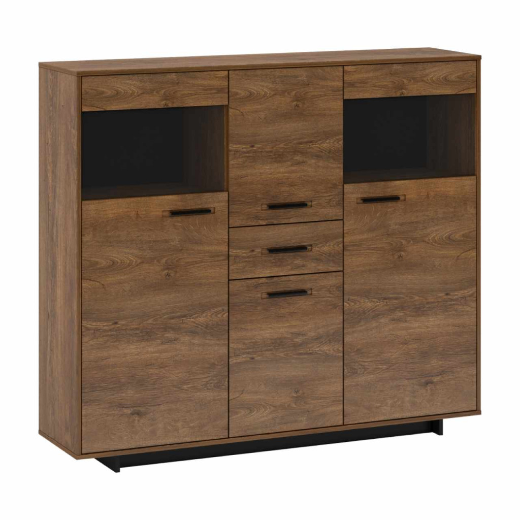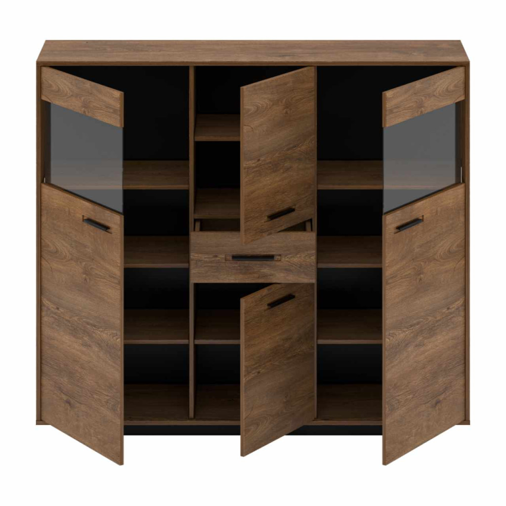Anyag: laminált DTD/MDF fóliázott/skloSzín: bolzano tölgy/feketeMéretek (SzxMéxMa): 158,2x40x140 cmAnyag vastagsága: 16 mmNégyajtós komódPolcos1 fiókTalapzatonAz alsó tér magassága a padlótól: 5 cmFém fogantyúLED világítás nélkülLED világítás fehér színben megvásárolhatóEgyedi dizájnSzép fa rajzHagyományos és modern belső térbeNappaliba, dolgozószobába és a tanulószobábaBontásban szállítva