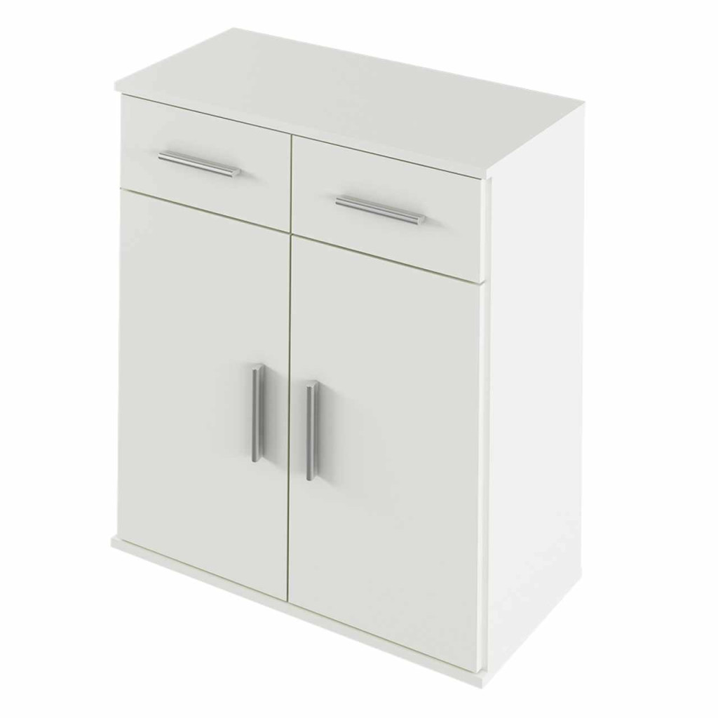 Anyag: laminált DTD Szín: fehér Méretek (SzxVxH): 70,6x35x79,5 cm Kétajtós Polcos Két fiók Fogantyúval Szétszerelve szállítva