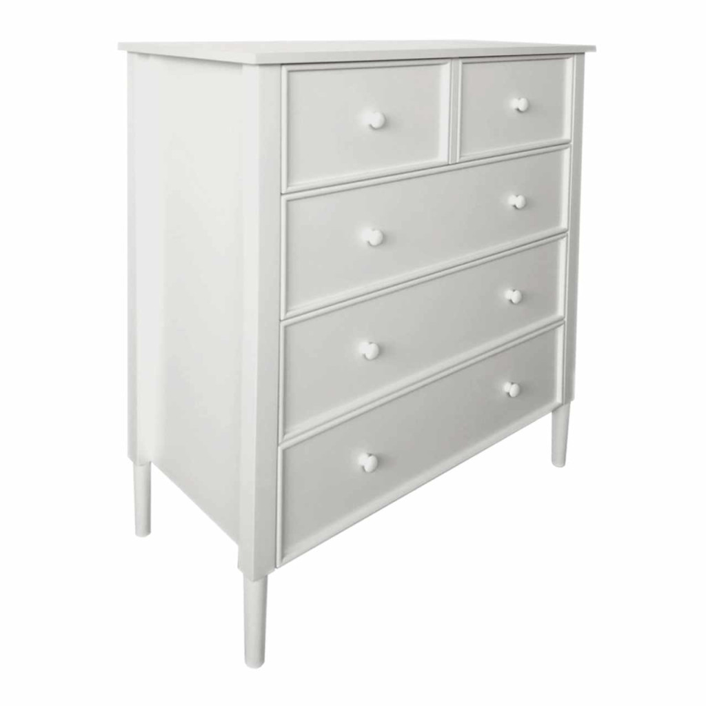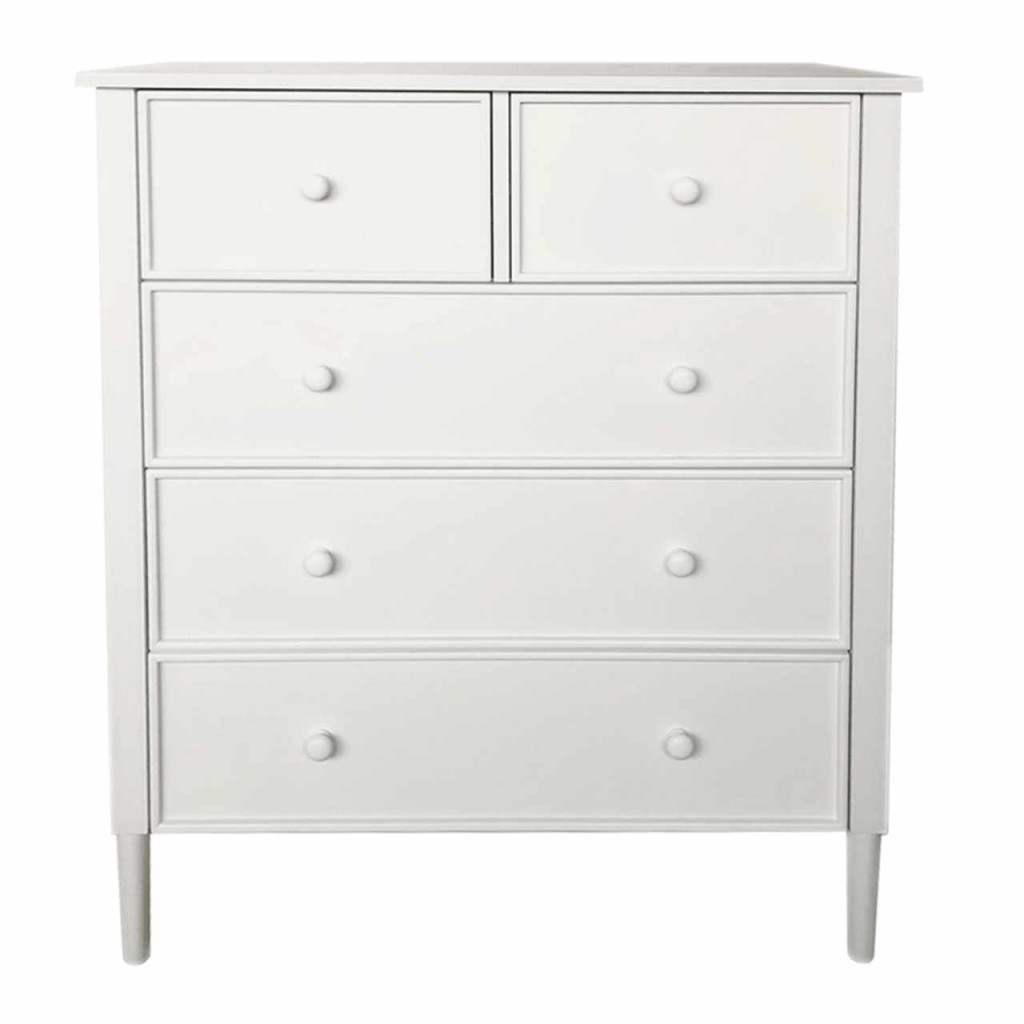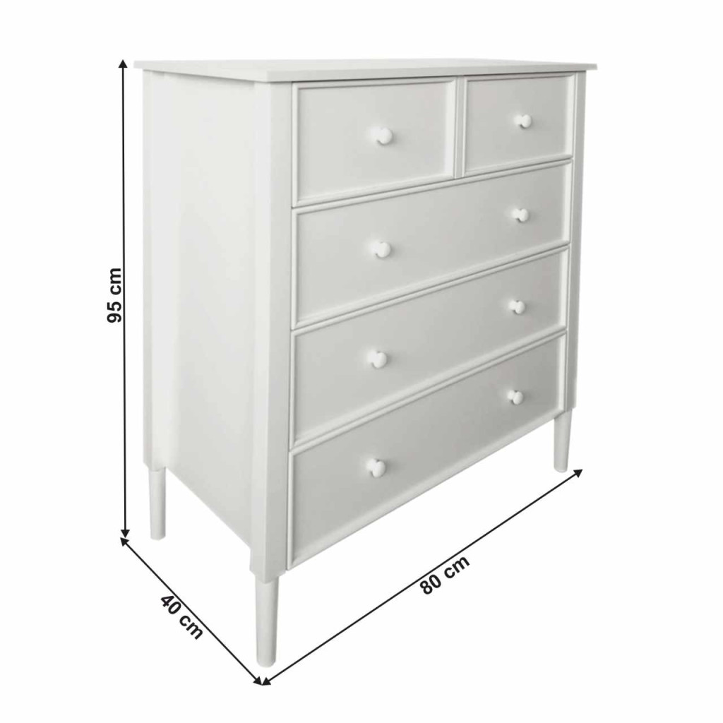 Anyag: MDFSzín: fehérMéretek (SzxMéxMa): 80x40x95cmAnyag vastagsága: 1,5 - 3,7 cmHárom nagyobb fiókKét kisebb fiókFa fogantyúkFogantyúk színe: fehérTeherbírás: 30 kgFiók teherbírása: 10 kgLábakonLábak magassága: 15 cmJavasoljuk a falhoz rögzíteniProvence-i stílusSzétszerelve szállítva