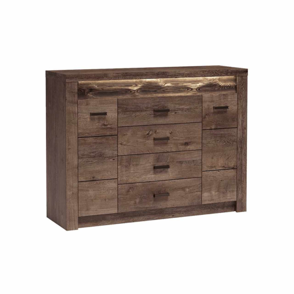 Komód INFINITY 07 Váz: 48 mm vastag Fém fogantyúk Anyag: laminált DTD, ABS élek Színváltozat: sötét kőris Méretek (SzéxMéxMa): 137x42x103,5 cm Szállítás szétszerelve. Szállítás LED világítás nélkül, LED világítás rendelhető hozzá.