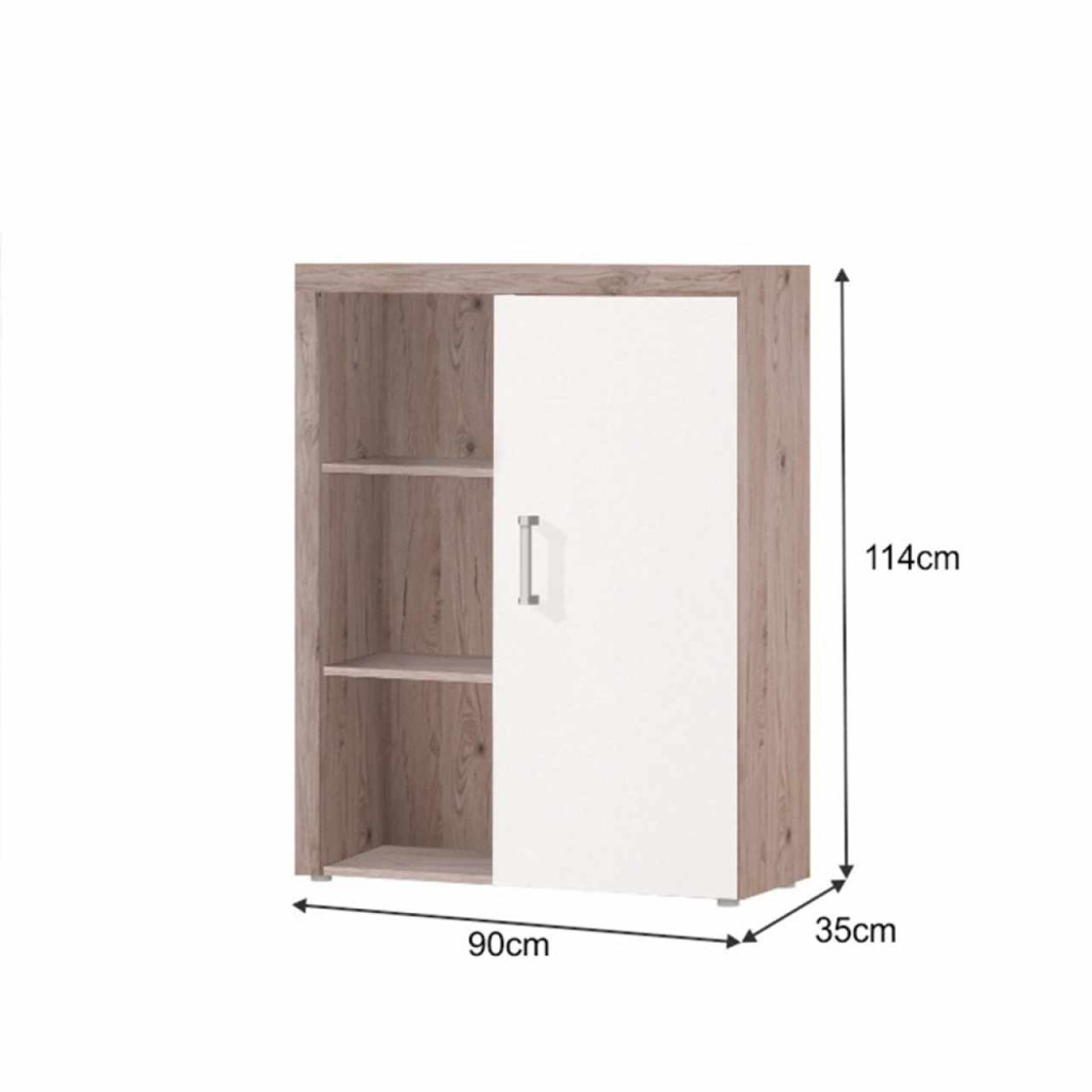 Anyag: laminált DTD Szín: san marino/cream Méretek (SzéxMéxMa): 90x35x114 cm 1 ajtós Nyitott állvány Polcos Szétszerelve szállítva