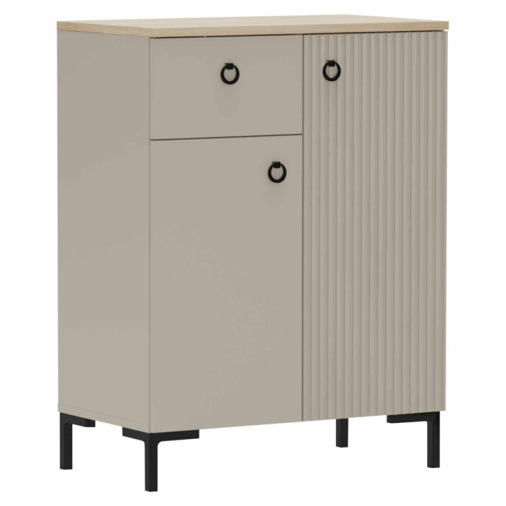 Anyag: laminált DTD/fóliázott MDFSzín: szürkésbarna Taupe/silverjack tölgyMéretek (SzxMéxMa): 70x40,7x93,1 cmDTD anyagvastagsága: 1,6-1,8 cmMDF anyagvastagsága: 1,9 cmKétajtósPolcosEgy fiókFiókok magassága: 20 cmFelső lap teherbírása: 10 kgPolc teherbírása: 5 kgFiók teherbírása: 3 kgFogantyúkkalFogantyú anyaga: fémFogantyú színe: matt feketeLábakonLábak magassága: 12 cmLábak anyaga: műanyagLábak színe: matt feketeDekoratív marású ajtókModern dizájnJavasoljuk a falhoz rögzítéstSzétszerelve szállítva